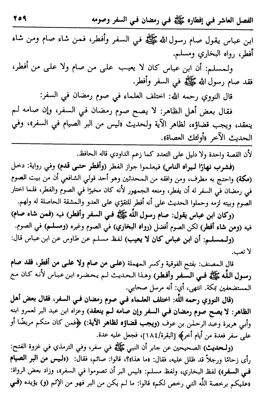 ابن عباس يقول: صام رسول الله -صلى الله عليه وسلم- في السفر وأفطر، فمن شاء صام ومن شاء أفطر، رواه البخاري ومسلم.