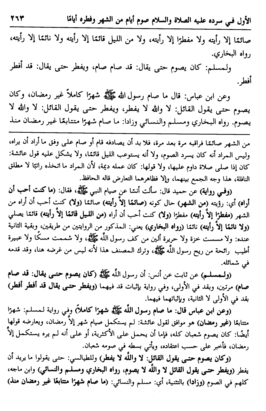 وعن ابن عباس: قال ما صام رسول الله -صلى الله عليه وسلم- شهرا كاملا غير رمضان، وكان يصوم حتى يقول القائل: لا والله لا يفطر، ويفطر حتى يقول القائل: لا والله لا يصوم. رواه البخاري ومسلم والنسائي وزادا: ما صام شهرا متتابعا غير رمضان منذ