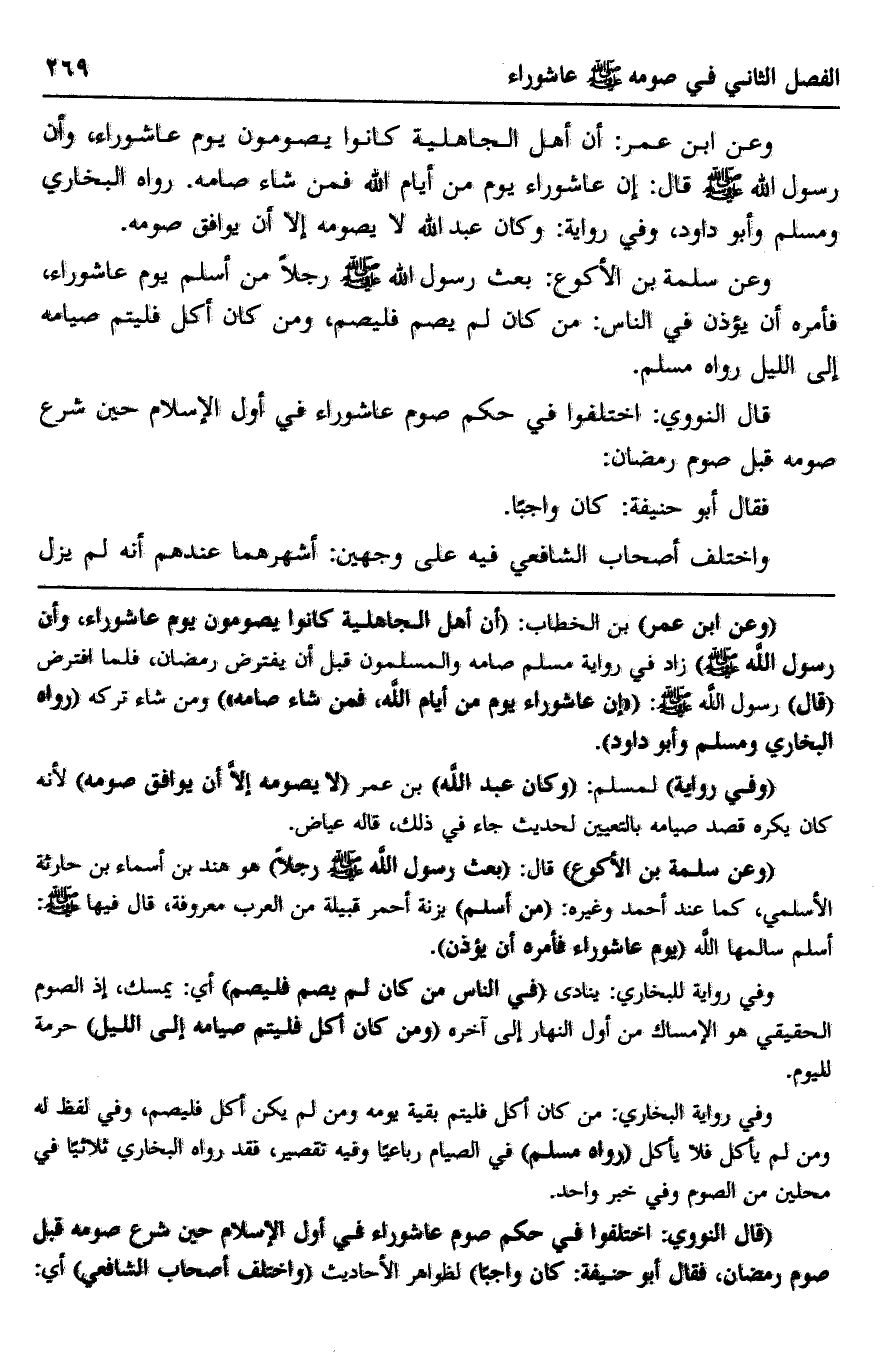 وعن ابن عمر: أن أهل الجاهلية كانوا يصومون يوم عاشوراء، وأن رسول الله -صلى الله عليه وسلم- قال: إن عاشوراء يوم من أيام الله فمن شاء صامه. رواه البخاري ومسلم وأبو داود، وفي رواية: وكان عبد الله لا يصومه إلا أن يوافق صومه.