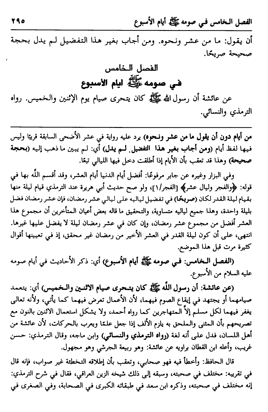الفصل الخامس: في صومه -صلى الله عليه وسلم- أيام الأسبوع