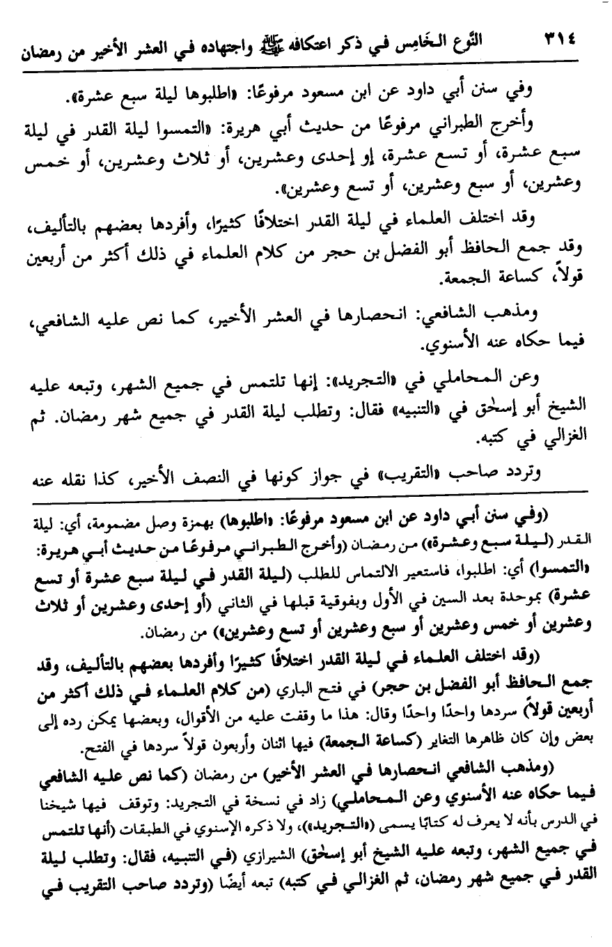 وقد اختلف العلماء في ليلة القدر اختلافا كثيرا، وأفردها بعضهم بالتأليف، وقد جمع الحافظ أبو الفضل بن حجر من كلام العلماء في ذلك أكثر من أربعين قولا، كساعة الجمعة.