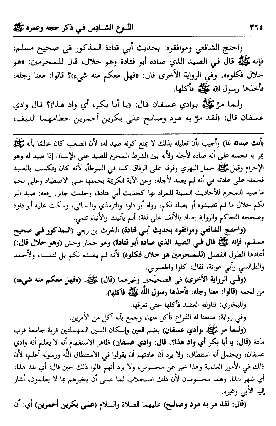 بأنك صدته لنا" وأجيب بأن تعليله بذلك لا يمنع كونه صيد له؛ لأن الصعب كان عالما بأنه -صلى الله عليه وسلم- يمر به فحمله على أنه صاده لأجله؛ ولأنه بين الشرط المحرم للصيد على الإنسان إذا صيد له وهو الإحرام، وقبل -صلى الله عليه وسلم- حمار البهري وفرقه على الرفاق كما في الموطأ؛ لأنه كان يتكسب بالصيد فحمله على عادته في أنه لم يصد لأجله، وعن الآية الكريمة بحملها على الاصطياد وعلى لحم ما صيد لمحرم للأحاديث المبينة للمراد بها كحديث أبي قتادة، وحديث جابر. رفعه: صيد البر لكم حلال ما لم تصيدوه أو يصاد لكم، رواه أبو داود والترمذي والنسائي، وسكت عليه أبو داود وصححه الحاكم والرواية يصاد بالألف على لغة: ألم يأتيك والأنباء تنمي.