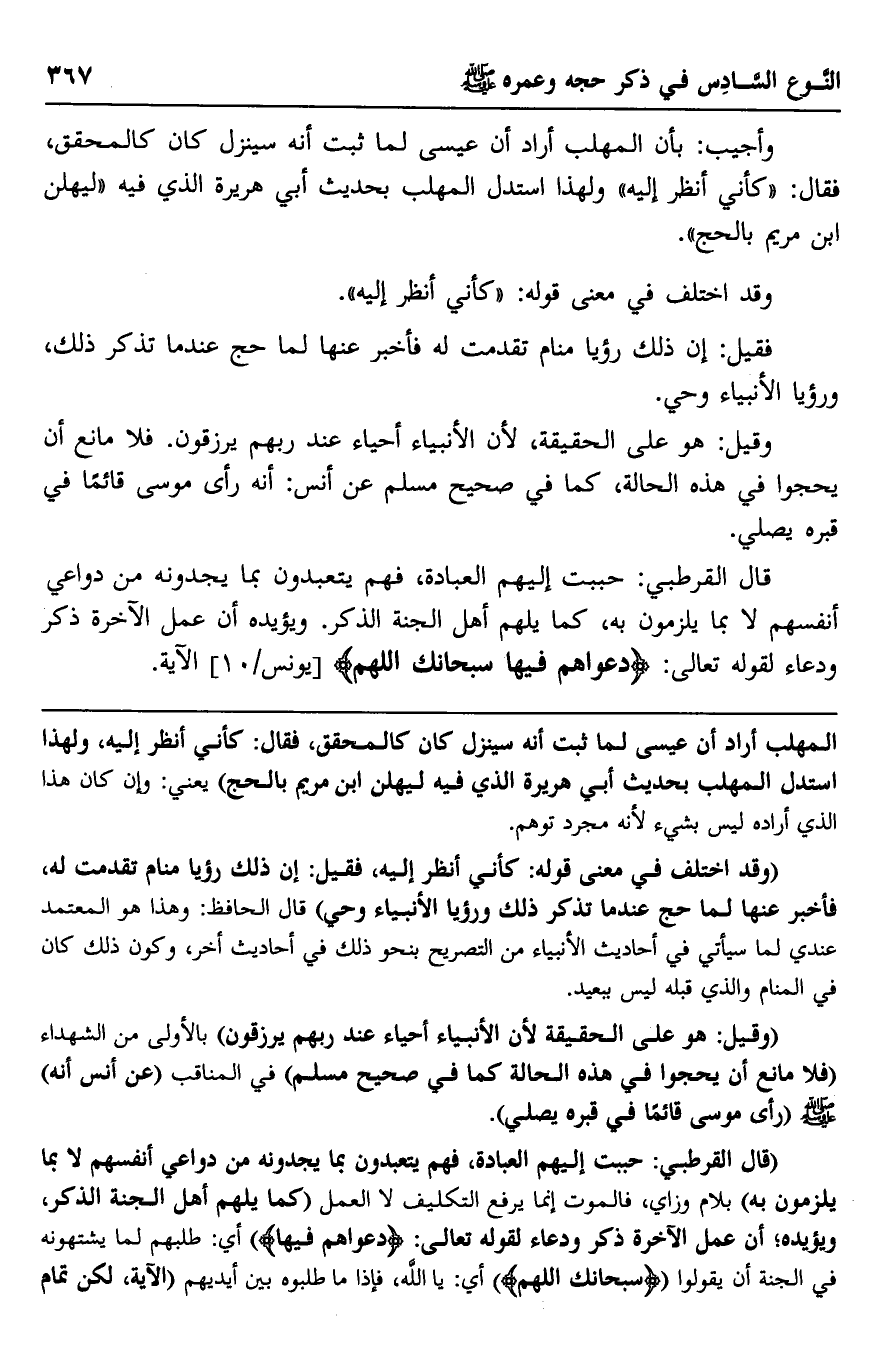 وقيل: هو على الحقيقة؛ لأن الأنبياء أحياء عند ربهم يرزقون. فلا مانع أن يحجوا في هذه الحالة، كما في صحيح مسلم عن أنس: أنه رأى موسى قائما في قبره يصلي.