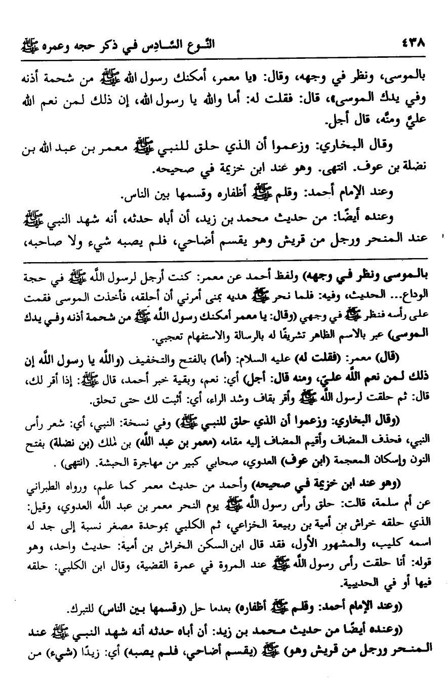 وقال البخاري: وزعموا أن الذي حلق للنبي -صلى الله عليه وسلم- معمر بن عبد الله بن نضلة بن عوف. انتهى. وهو عند ابن خزيمة في صحيحه.