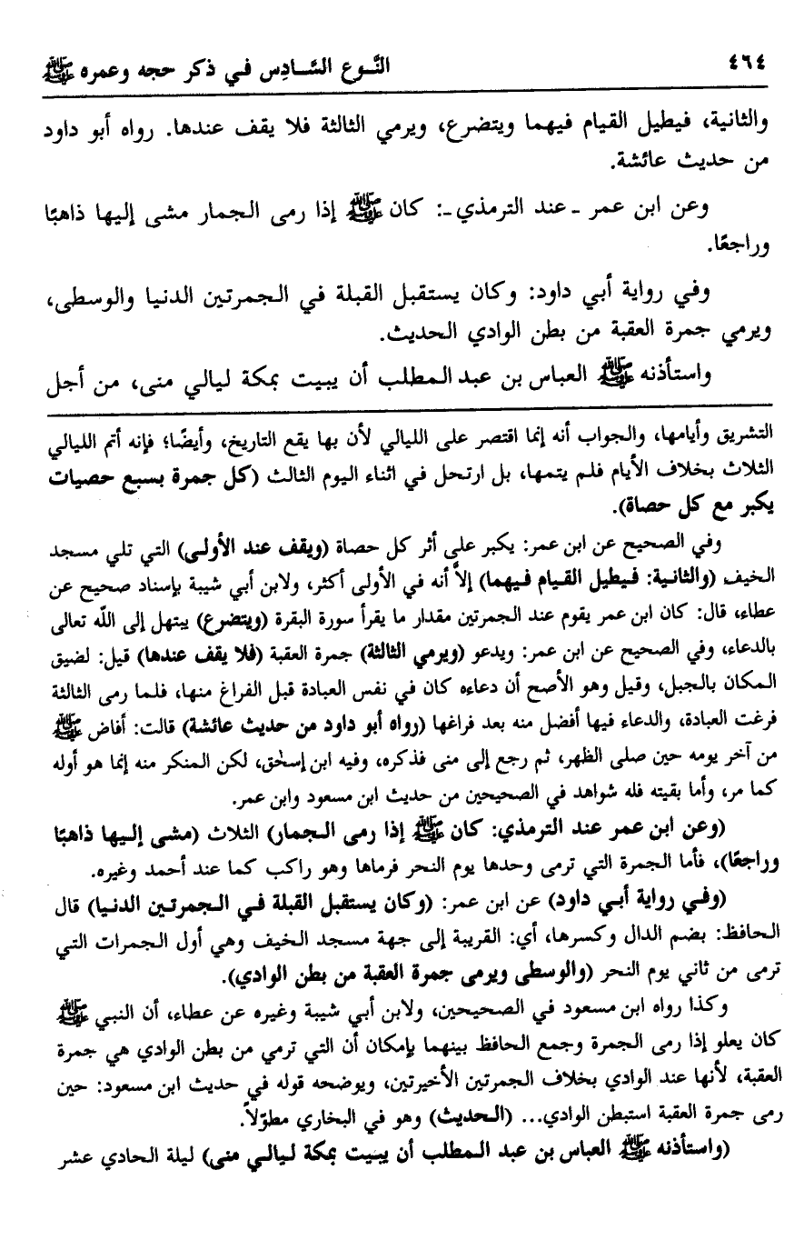 وكذا رواه ابن مسعود في الصحيحين، ولابن أبي شيبة وغيره عن عطاء، أن النبي -صلى الله عليه وسلم- كان يعلو إذا رمى الجمرة وجمع الحافظ بينهما بإمكان أن التي ترمى من بطن الوادي هي جمرة العقبة؛ لأنها عند الوادي بخلاف الجمرتين الأخيرتين، ويوضحه قوله في حديث بن مسعود: حين رمى جمرة العقبة استبطن الوادي ... "الحديث" وهو في البخاري مطولا.
