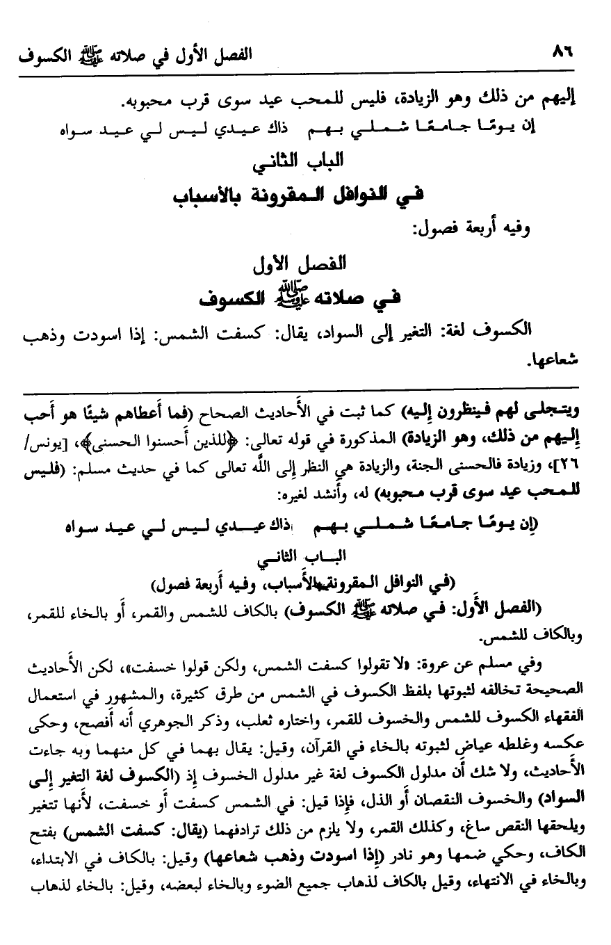 الباب الثاني: "في النوافل المقرونة بالأسباب، وفيه أربعة فصول"