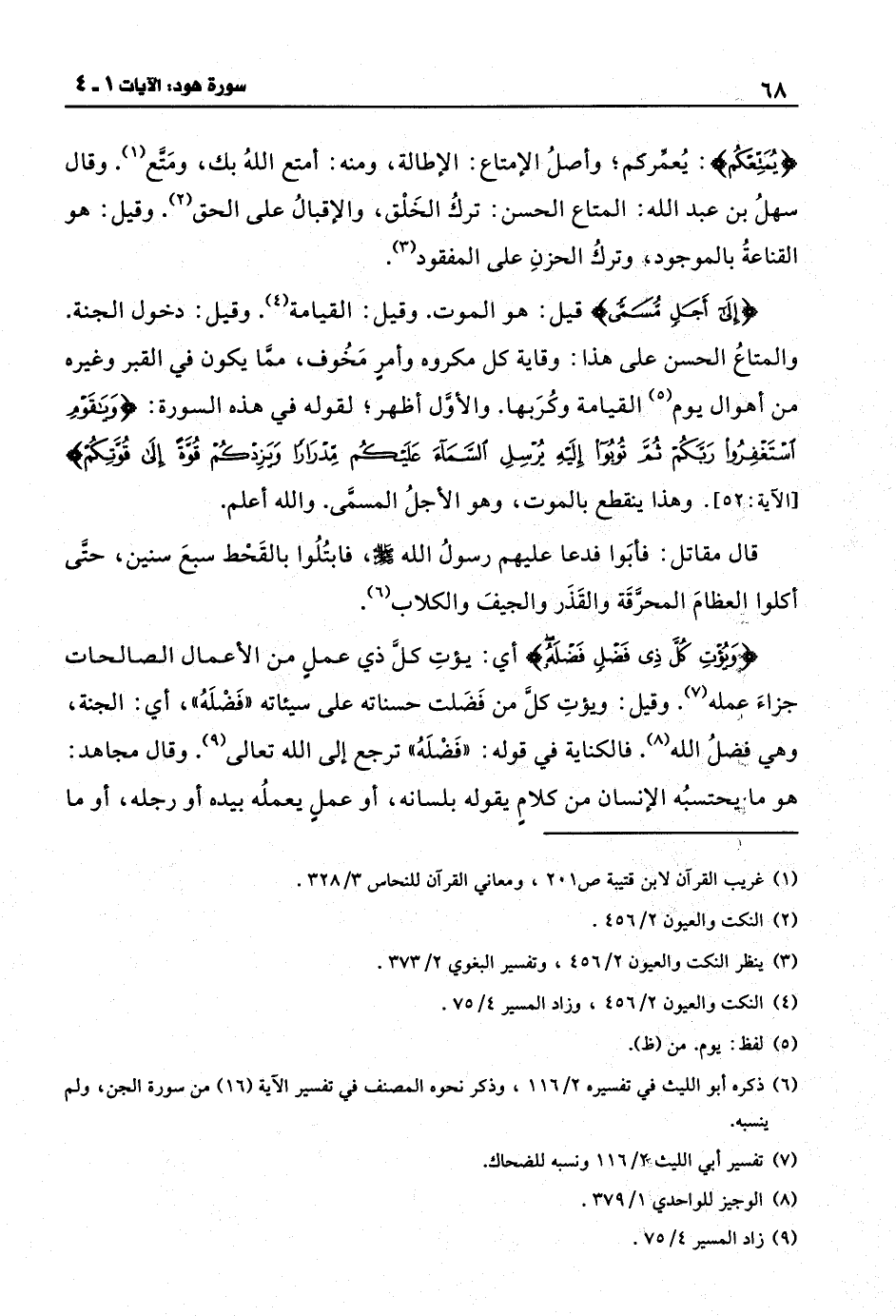 قَوْلِهِ تَعَالَى: (إِنَّ الَّذِينَ آمَنُوا وَعَمِلُوا الصَّالِحاتِ كانَتْ لَهُمْ جَنَّاتُ الْفِرْدَوْسِ نُزُلًا) 10 قَالَ قَتَادَةُ: الْفِرْدَوْسُ رَبْوَةُ الْجَنَّةِ وَأَوْسَطُهَا وَأَعْلَاهَا وَأَفْضَلُهَا وَأَرْفَعُهَا. وَقَالَ أَبُو أُمَامَةَ الْبَاهِلِيُّ: الْفِرْدَوْسُ سُرَّةُ الْجَنَّةِ. وَقَالَ كَعْبٌ: لَيْسَ فِي الْجِنَانِ جَنَّةٌ أَعْلَى مِنْ جَنَّةِ الْفِرْدَوْسِ، فِيهَا الْآمِرُونَ بِالْمَعْرُوفِ، وَالنَّاهُونَ عَنِ الْمُنْكَرِ. وَفِي صَحِيحِ الْبُخَارِيُّ عَنْ أَبِي هُرَيْرَةَ قَالَ قَالَ رَسُولُ اللَّهِ صَلَّى اللَّهُ عَلَيْهِ وَسَلَّمَ: (مَنْ آمَنَ بِاللَّهِ وَبِرَسُولِهِ وَأَقَامَ الصَّلَاةَ وَصَامَ رَمَضَانَ كَانَ حَقًّا عَلَى اللَّهِ أَنْ يُدْخِلَهُ الْجَنَّةَ جَاهَدَ فِي سَبِيلِ اللَّهِ أَوْ جَلَسَ فِي أَرْضِهِ الَّتِي وُلِدَ فِيهَا) قَالُوا: يَا رَسُولَ اللَّهِ أَفَلَا نُبَشِّرَ النَّاسَ؟ قَالَ: (إِنَّ فِي الْجَنَّةِ مِائَةَ دَرَجَةٍ أَعَدَّهَا اللَّهُ لِلْمُجَاهِدِينَ فِي سَبِيلِ اللَّهِ مَا بَيْنَ الدَّرَجَتَيْنِ كَمَا بَيْنَ السَّمَاءِ وَالْأَرْضِ فَإِذَا سَأَلْتُمُ اللَّهَ تَعَالَى فَاسْأَلُوهُ الْفِرْدَوْسَ فَإِنَّهُ أَوْسَطُ الْجَنَّةِ وَأَعْلَى الْجَنَّةِ- أَرَاهُ قَالَ- وَفَوْقَهُ عَرْشُ الرَّحْمَنِ وَمِنْهُ تُفَجَّرُ أَنْهَارُ الْجَنَّةِ) وَقَالَ مُجَاهِدٌ: وَالْفِرْدَوْسُ الْبُسْتَانُ بِالرُّومِيَّةِ. الْفَرَّاءُ: هُوَ عَرَبِيٌّ. وَالْفِرْدَوْسُ حَدِيقَةٌ فِي الْجَنَّةِ. وَفِرْدَوْسُ اسْمُ رَوْضَةٍ دُونَ الْيَمَامَةِ. وَالْجَمْعُ فَرَادِيسُ، قَالَ أُمَيَّةُ بْنُ أَبِي الصَّلْتِ الثَّقَفِيُّ:
