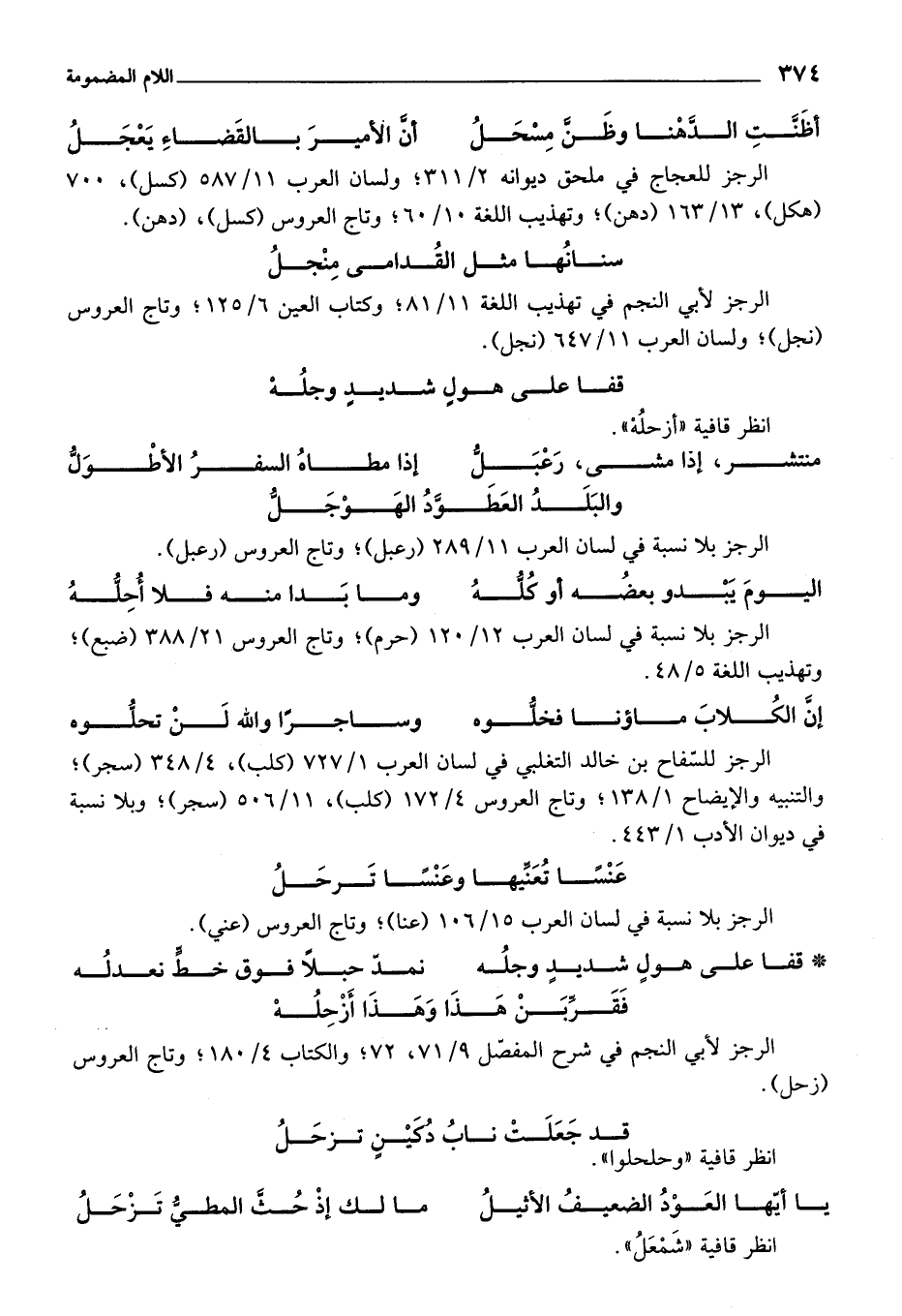 الرجز للعجاج في ملحق ديوانه 2/ 311؛ ولسان العرب 11/ 587 (كسل)، 700 (هكل)، 13/ 163 (دهن)؛ وتهذيب اللغة 10/ 60؛ وتاج العروس (كسل)، (دهن).