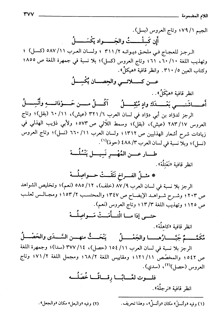الرجز لدؤاد بن أبي دؤاد في لسان العرب 6/ 321 (عيش)، 11/ 60 (بقل)؛ وتاج العروس 17/ 283 (عيش)، (بقل)؛ وسمط اللآلي ص573؛ ولأبي ذؤيب الهذلي في زيادات شرح أشعار الهذليين ص1312؛ ولسان العرب 11/ 660 (نسل)؛ وتاج العروس (نسل)؛ وبلا نسبة في لسان العرب 3/ 488 (حوذ).