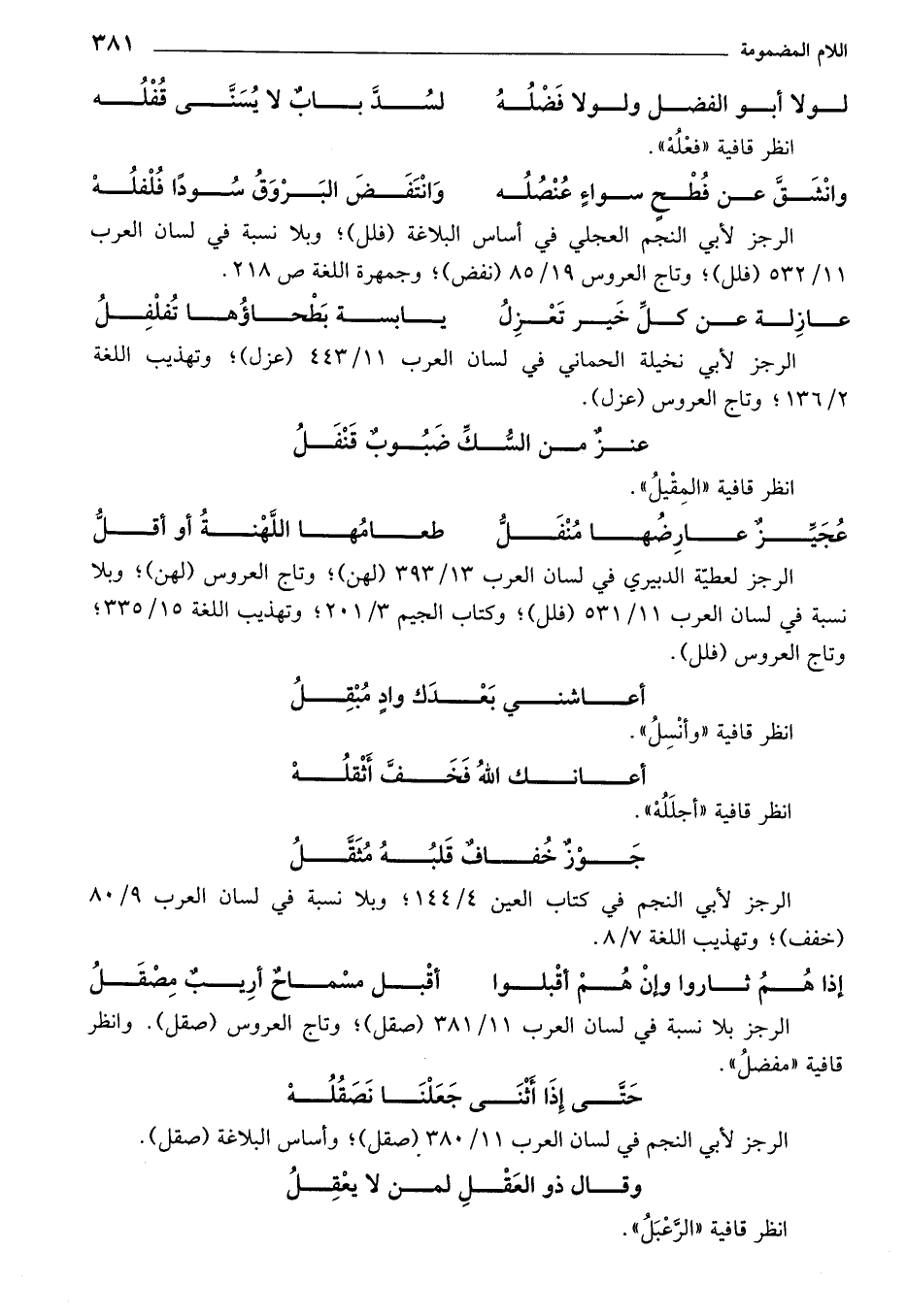 الرجز لعطية الدبيري في لسان العرب 13/ 393 (لهن)؛ وتاج العروس (لهن)؛ وبلا نسبة في لسان العرب 11/ 531 (فلل)؛ وكتاب الجيم 3/ 201؛ وتهذيب اللغة 15/ 335؛ وتاج العروس (فلل).