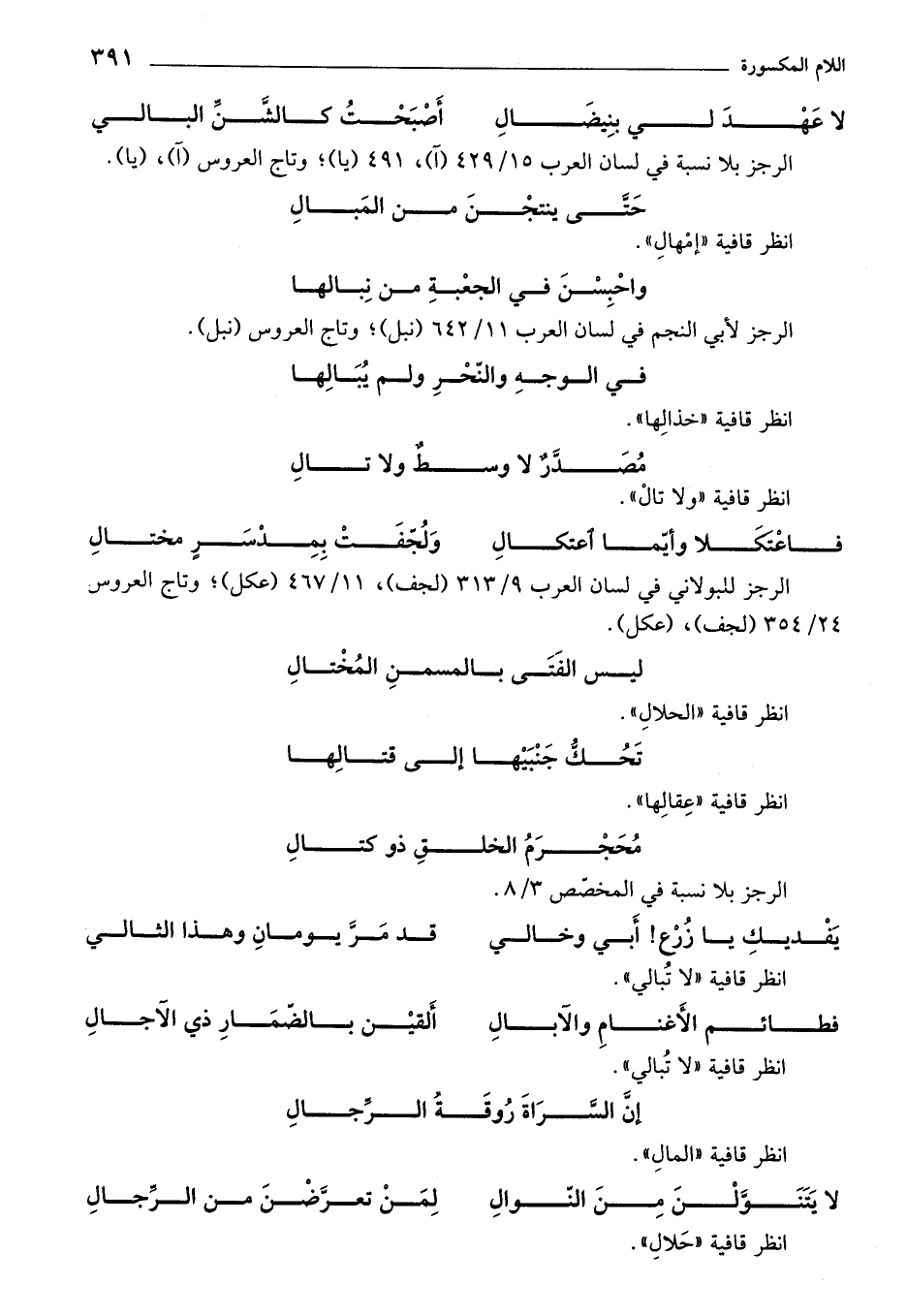انظر قافية"لا تبالي".