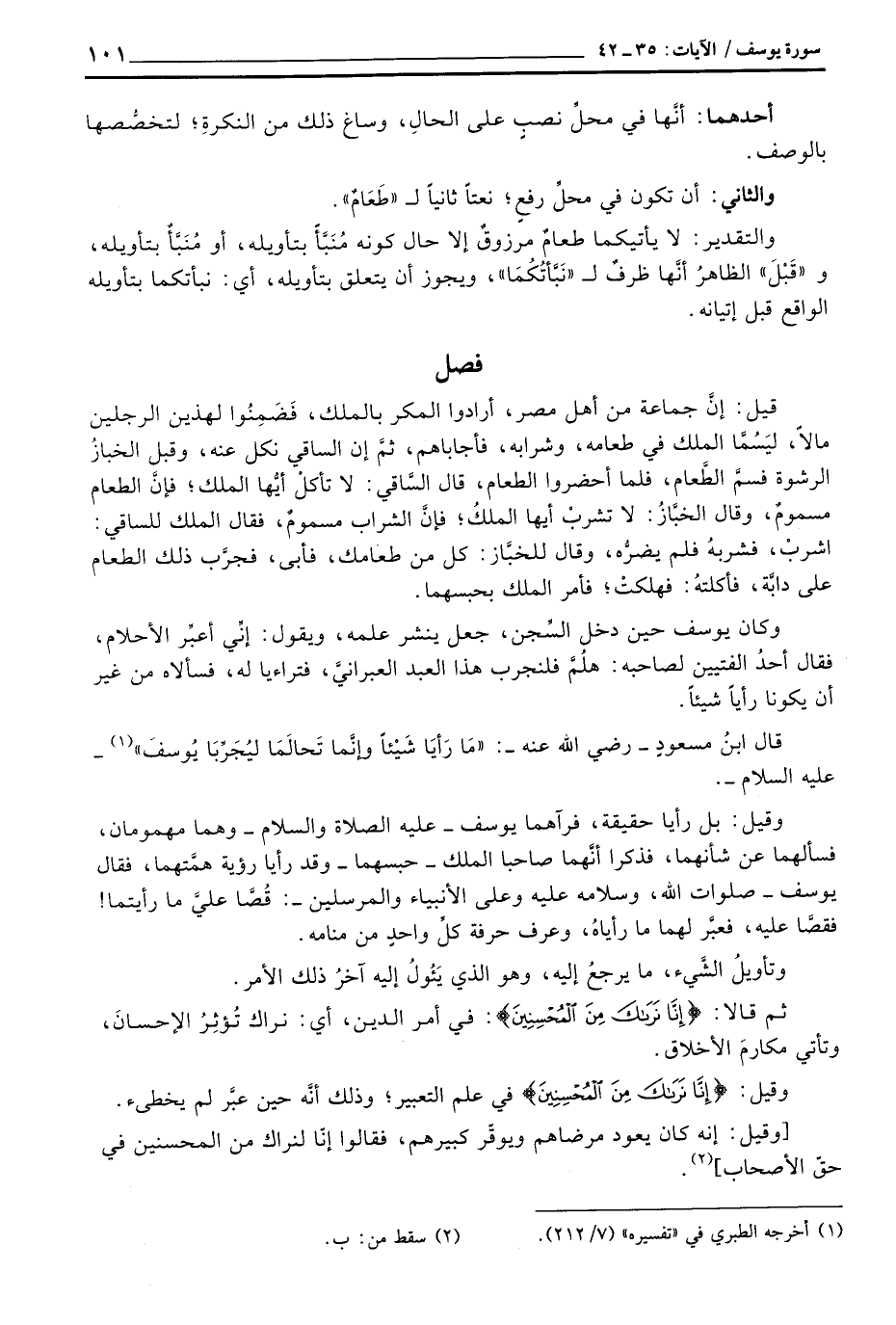 قال ابنُ مسعودٍ رَضِيَ اللَّهُ عَنْه:» مَا رَأيَا شَيْئاً وإنَّما تَحالَمَا ليُجَرِّبَا يُوسفَ «عليه السلام.