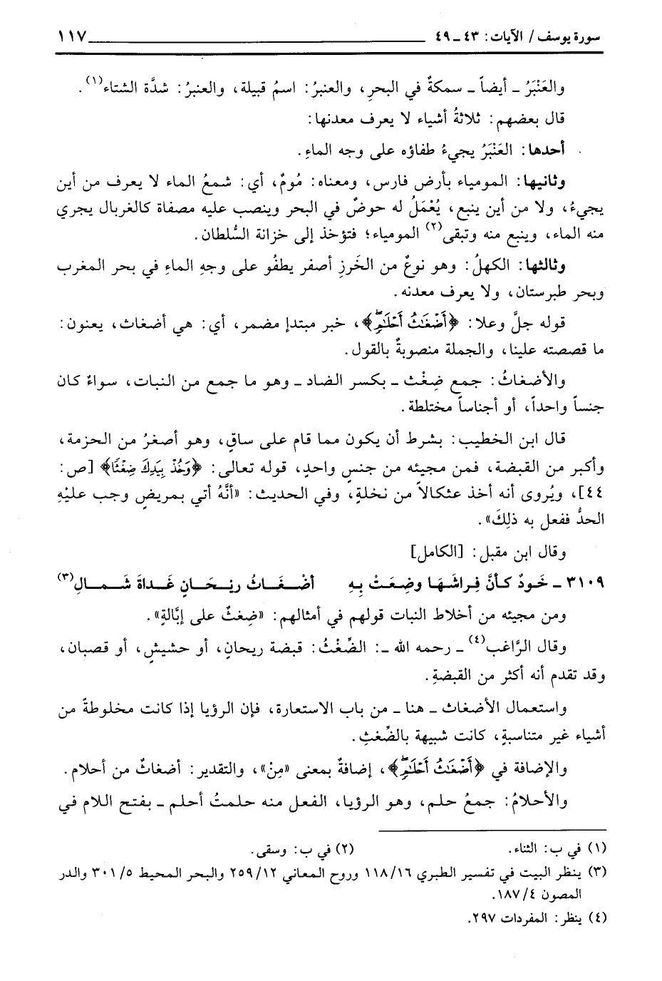 والأضغاثُ: جمع ضِغْث بكسر الضاد وهو ما جمع من النبات، سواءٌ كان جنساً واحداً، أو أجناساً مختلطة.