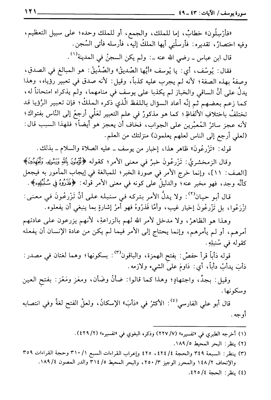 قوله دَأباً قرأ حفصٌ: بفتحِ الهمزة، والباقون: بسكونها؛ وهما لغتان في مصدر: دَأبَ يدأبُ دأباً، أي: دَاومَ على الشيء ولازمه.