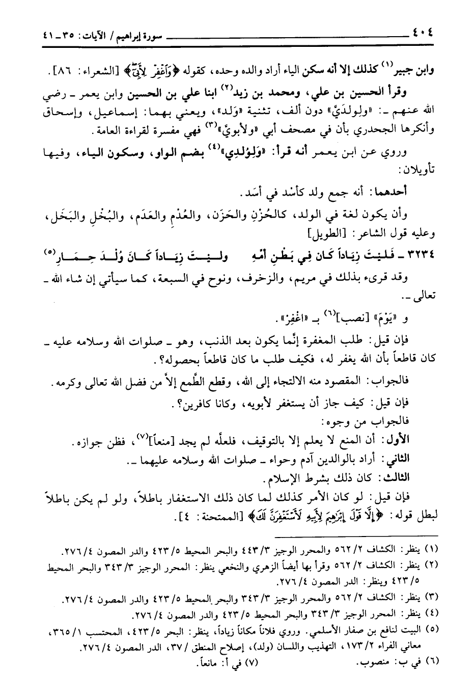 وقرأ الحسين بن علي، ومحمد بن زيد ابنا علي بن الحسين وابن يعمر رَضِيَ اللَّهُ عَنْهم: «ولِولدَيَّ» ودمن ألف، تثنية «وَلد» ، ويعنى بهما: إسماعيل، وإسحاق وأنكرها الجحدري بأن في مصحف أبي «ولأبويَّ» فهي مفسرة لقراءة العامة.