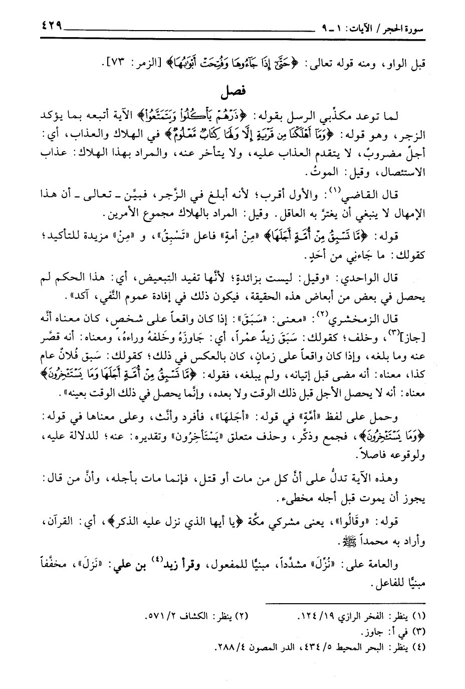 لما توعد مكذِّبي الرسل بقوله: {ذَرْهُمْ يَأْكُلُواْ وَيَتَمَتَّعُواْ} الآية أتبعه بما يؤكد الزجر، وهو قوله: {وَمَآ أَهْلَكْنَا مِن قَرْيَةٍ إِلاَّ وَلَهَا كِتَابٌ مَّعْلُومٌ} في الهلاك والعذاب، أي: أجلٌ مضروبٌ، لا يتقدم العذاب عليه، ولا يتأخر عنه، والمراد بهذا الهلاك: عذاب الاستئصال، وقيل: الموتُ.