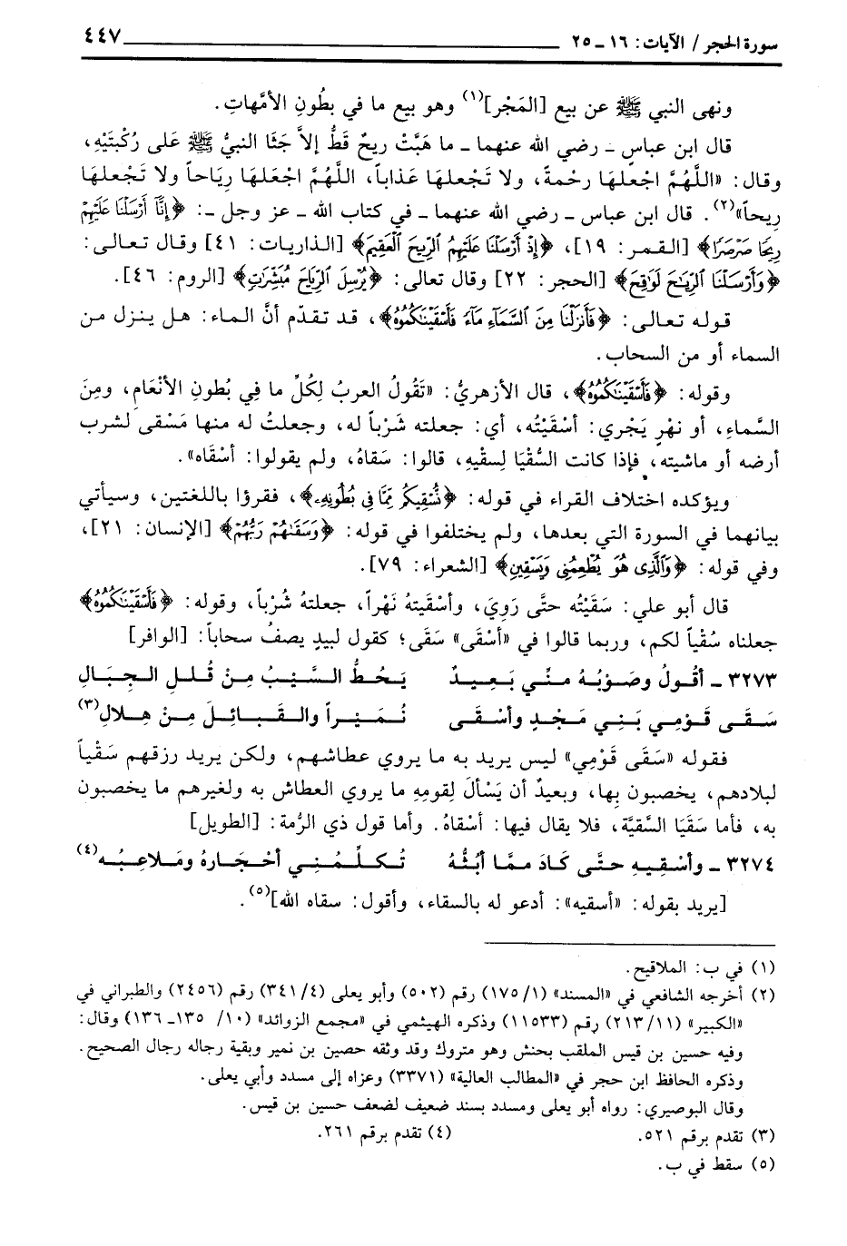 ويؤكده اختلاف القراء في قوله: {نُّسْقِيكُمْ مِّمَّا فِي بُطُونِهِ} [النحل: 66] ، فقرؤا باللغتين، وسيأتي بيانهما في السورة التي بعدها، ولم يختلفوا في قوله: {وَسَقَاهُمْ رَبُّهُمْ} [الإنسان: 21] ، وفي قوله: {والذي هُوَ يُطْعِمُنِي وَيَسْقِينِ} [الشعراء: 79] .