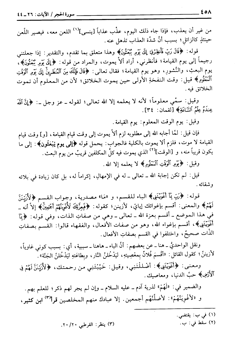 و «لإْغْوِيَنَّهُمْ» : لأضلَّنَّهُم أجمعين. إلا عبادك منهم المخلصين قرأ ابن كثير،