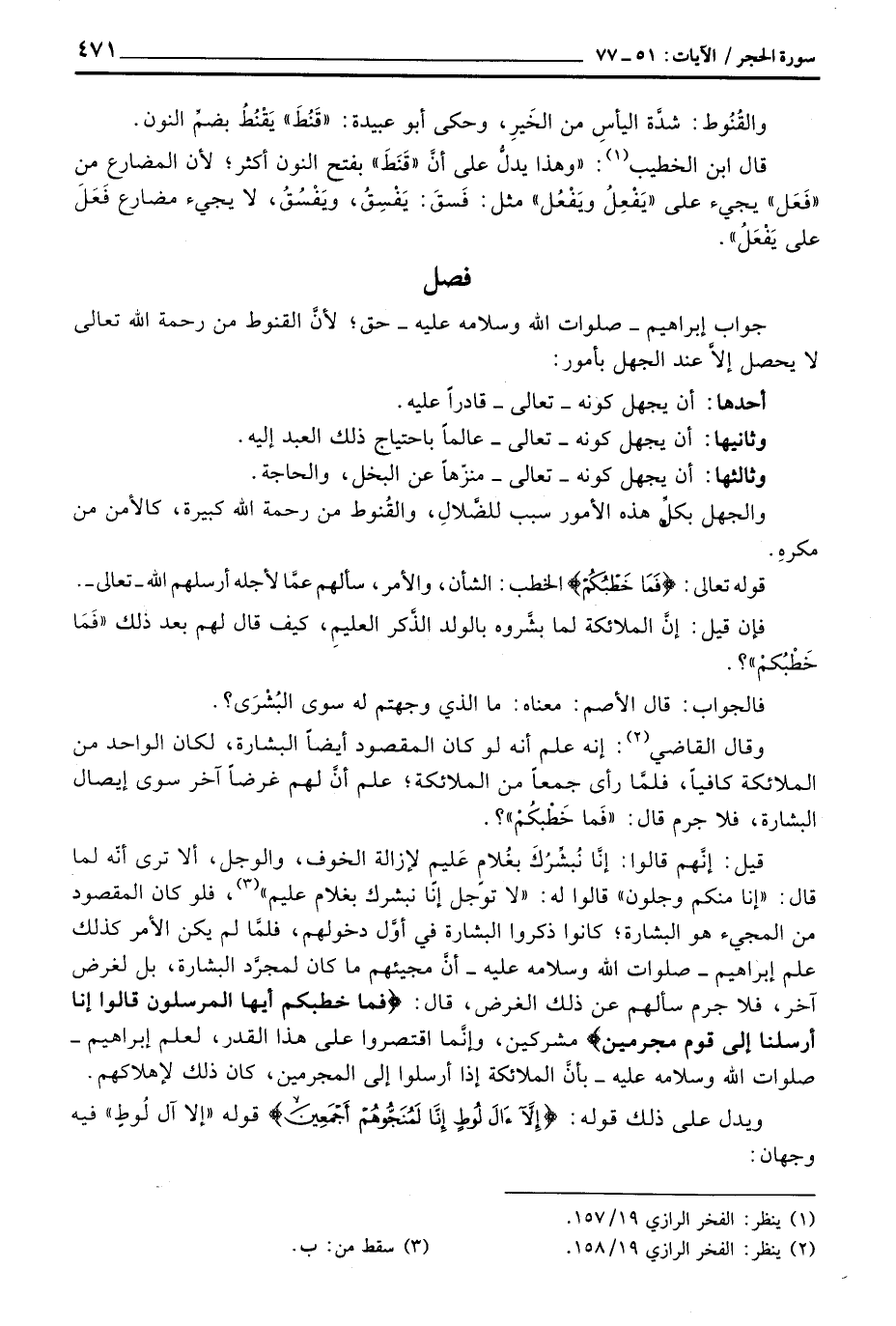 جواب إبراهيم صلوات الله وسلامه عليه حق؛ لأنَّ الفنوط من رحمة الله تعالى لا يحصل إلاَّ عند الجهل بأمور:
