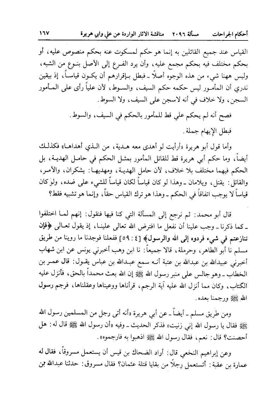 وَأَمَّا قَوْلُ أَبِي هُرَيْرَةَ " أَرَأَيْت لَوْ أَهْدَى مَعَهُ هَدِيَّةً، مَنْ الَّذِي أَهْدَاهَا؟ " فَكَذَلِكَ أَيْضًا، وَمَا حُكْمُ أَبِي هُرَيْرَةَ قَطُّ لِلْقَاتِلِ الْمَأْمُورِ بِمِثْلِ الْحُكْمِ فِي حَامِلِ الْهَدِيَّةِ، بَلْ الْحُكْمُ فِيهِمَا مُخْتَلِفٌ بِلَا خِلَافٍ، لِأَنَّ حَامِلَ الْهَدِيَّةِ، وَمُهْدِيَهَا: يُشْكَرَانِ، وَالْآمِرُ، وَالْقَاتِلُ: يُقْتَلُ، وَيُلَامَانِ - وَهَذَا لَوْ كَانَ قِيَاسًا لَكَانَ قِيَاسًا لِلشَّيْءِ عَلَى ضِدِّهِ، وَلَوْ كَانَ قِيَاسًا لَا يُوجِبُ اتِّفَاقًا فِي الْحُكْمِ - وَهَذَا هُوَ تَرْكُ الْقِيَاسِ حَقًّا، وَإِنَّمَا هُوَ تَشْبِيهٌ فَقَطْ؟ قَالَ أَبُو مُحَمَّدٍ: ثُمَّ نَرْجِعُ إلَى الْمَسْأَلَةِ الَّتِي كُنَّا فِيهَا فَنَقُولُ: إنَّهُمْ لَمَّا اخْتَلَفُوا - كَمَا ذَكَرْنَا - وَجَبَ عَلَيْنَا أَنْ نَفْعَلَ مَا افْتَرَضَ اللَّهُ تَعَالَى عَلَيْنَا، إذْ يَقُولُ تَعَالَى {فَإِنْ تَنَازَعْتُمْ فِي شَيْءٍ فَرُدُّوهُ إِلَى اللَّهِ وَالرَّسُولِ} [النساء: 59] فَفَعَلْنَا فَوَجَدْنَا مَا رُوِّينَا مِنْ طَرِيقِ مُسْلِمٍ نا أَبُو الطَّاهِرِ، وَحَرْمَلَةُ، قَالَا جَمِيعًا: نا ابْنُ وَهْبٍ أَخْبَرَنِي يُونُسُ عَنْ ابْنِ شِهَابٍ أَخْبَرَنِي عُبَيْدُ اللَّهِ بْنُ عَبْدِ اللَّهِ بْنِ عُتْبَةَ أَنَّهُ سَمِعَ عَبْدَ اللَّهِ بْنَ عَبَّاسٍ يَقُولُ: قَالَ عُمَرُ بْنُ الْخَطَّابِ - وَهُوَ جَالِسٌ عَلَى مِنْبَرِ رَسُولِ اللَّهِ - صَلَّى اللَّهُ عَلَيْهِ وَسَلَّمَ - إنَّ اللَّهَ بَعَثَ مُحَمَّدًا بِالْحَقِّ، فَأَنْزَلَ عَلَيْهِ الْكِتَابَ، وَكَانَ مِمَّا أَنْزَلَ اللَّهُ عَلَيْهِ آيَةَ الرَّجْمِ، قَرَأْنَاهَا وَوَعَيْنَاهَا وَعَقَلْنَاهَا، فَرَجَمَ رَسُولُ اللَّهِ - صَلَّى اللَّهُ عَلَيْهِ وَسَلَّمَ - وَرَجَمْنَا بَعْدَهُ. وَمِنْ طَرِيقِ مُسْلِمٍ - أَيْضًا - عَنْ أَبِي هُرَيْرَةَ " أَنَّهُ «أَتَى رَجُلٌ مِنْ الْمُسْلِمِينَ رَسُولَ اللَّهِ - صَلَّى اللَّهُ عَلَيْهِ وَسَلَّمَ - فَقَالَ يَا رَسُولَ اللَّهِ إنِّي زَنَيْت فَذَكَرَ الْحَدِيثَ - وَفِيهِ أَنَّ رَسُولَ اللَّهِ - صَلَّى اللَّهُ عَلَيْهِ وَسَلَّمَ - قَالَ لَهُ: هَلْ أَحْصَنْتَ؟ قَالَ: نَعَمْ، فَقَالَ رَسُولُ اللَّهِ - صَلَّى اللَّهُ عَلَيْهِ وَسَلَّمَ - اذْهَبُوا بِهِ فَارْجُمُوهُ» .