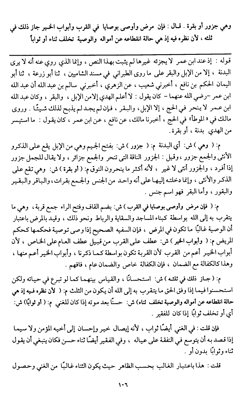 ـــــــــــــــــــــــــــــQقوله: إذا عند ابن عمر لا يجزئه غيرها لم يثبت بهذا النص، وإنما الذي روي أنه لا يرى البدنة، إلا من الإبل والبقر على ما روى الطبراني في مسند الشاميين، ثنا أبو زرعة، ثنا أبو اليمان الحكم بن نافع، أخبرني شعيب، عن الزهري، أخبرني سالم بن عبد الله أن عبد الله بن عمر - رَضِيَ اللَّهُ عَنْهُ - كان يقول: لا أعلم الهدي إلا من الإبل، والبقر، وكان عبد الله ابن عمر لا ينحر في الحج، إلا الإبل، والبقر، فإن لم يجد لم يذبح لذلك شيئا، وروى مالك في " الموطأ " في الحج، أخبرنا مالك، عن نافع، عن ابن عمر، كان يقول: ما استيسر من الهدي بدنة، أو بقرة.
