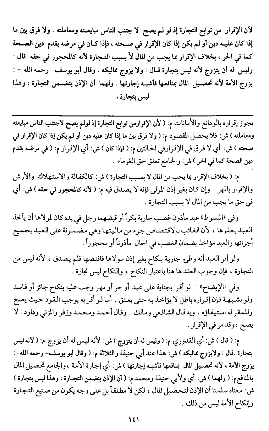 ـــــــــــــــــــــــــــــQيجوز إقراره بالودائع والأمانات م: (لأن الإقرار من توابع التجارة إذ لو لم يصح لاجتنب الناس مبايعته ومعاملته) ش: فلا يحصل المقصود م: (ولا فرق بين ما إذا كان عليه دين أو لم يكن إذا كان الإقرار في صحته) ش: أي لا فرق في الإقرار في الحالتين م: (فإذا كان) ش: أي الإقرار م: (في مرضه يقدم دين الصحة كما في الحر) ش: والجامع تعلق حق الغرماء.