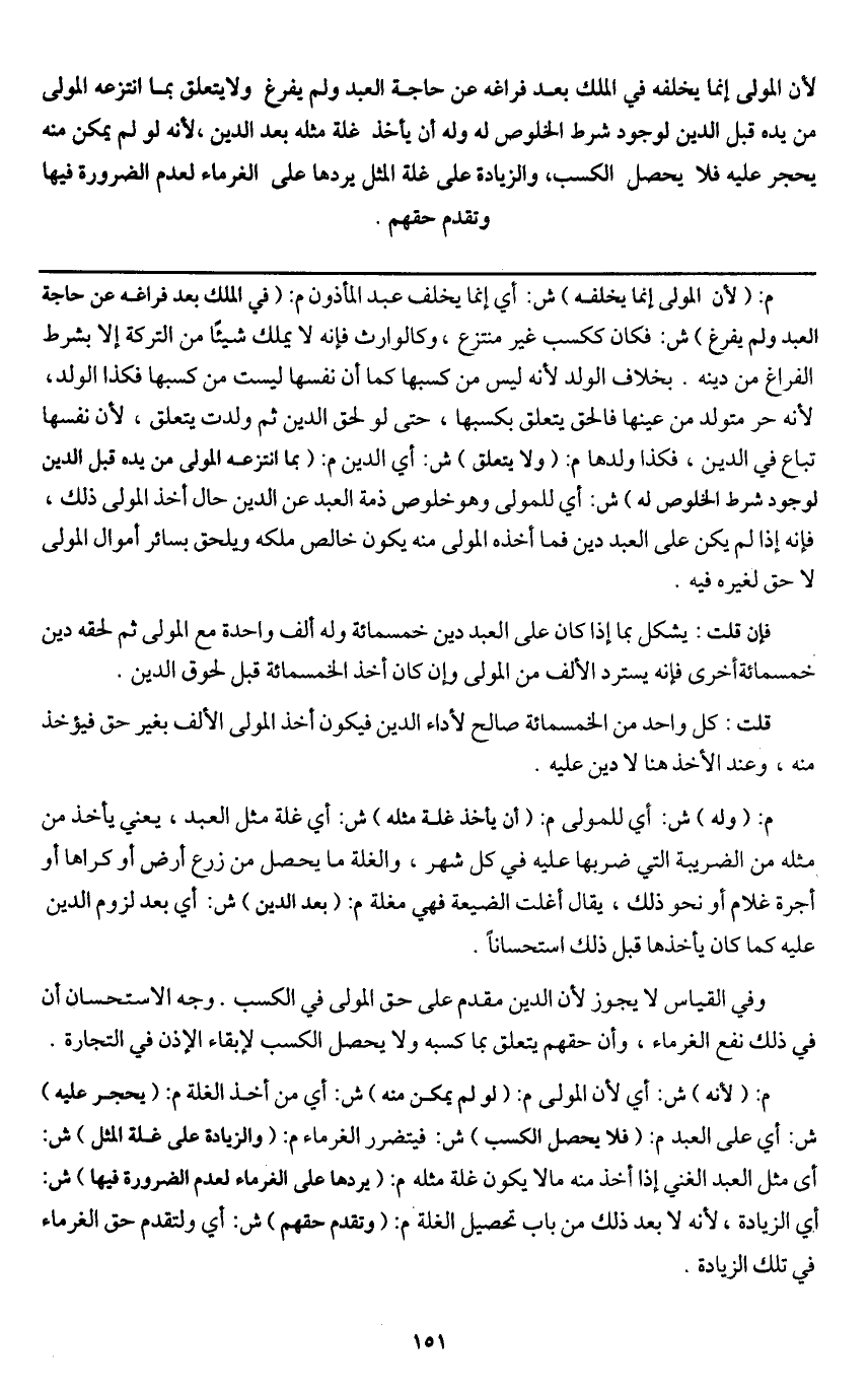 قلت: كل واحد من الخمسمائة صالح لأداء الدين فيكون أخذ المولى الألف بغير حق فيؤخذ منه، وعند الأخذ هنا لا دين عليه.