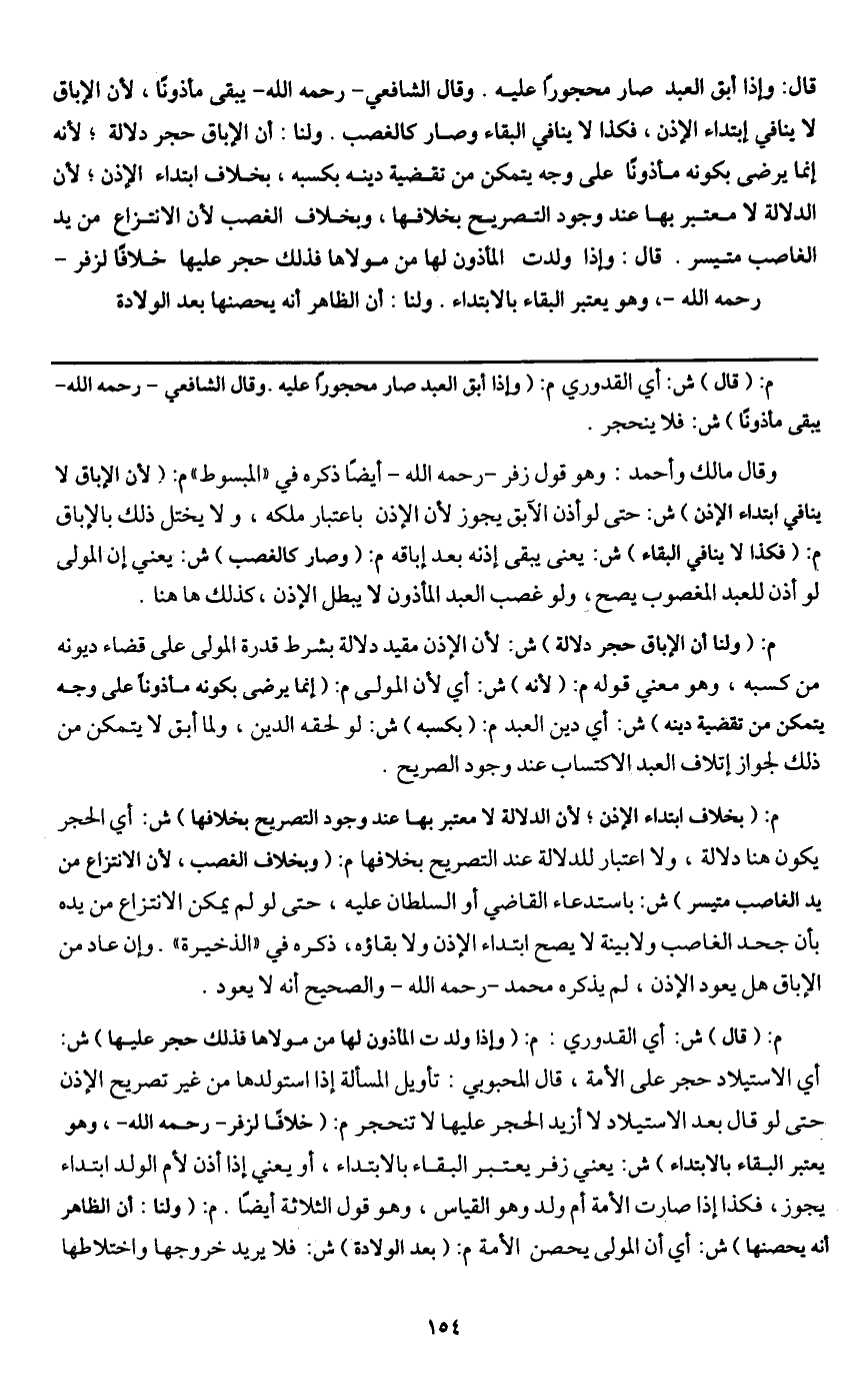 م: (بخلاف ابتداء الإذن؛ لأن الدلالة لا معتبر بها عند وجود التصريح بخلافها) ش: أي الحجر يكون هنا دلالة، ولا اعتبار للدلالة عند التصريح بخلافها م: (وبخلاف الغصب؛ لأن الانتزاع من يد الغاصب متيسر) ش: باستدعاء القاضي أو السلطان عليه، حتى لو لم يمكن الانتزاع من يده بأن جحد الغاصب ولا بينة لا يصح ابتداء الإذن ولا بقاؤه، ذكره في " الذخيرة ". وإن عاد من الإباق هل يعود الإذن، لم يذكره محمد - رَحِمَهُ اللَّهُ - والصحيح أنه لا يعود.