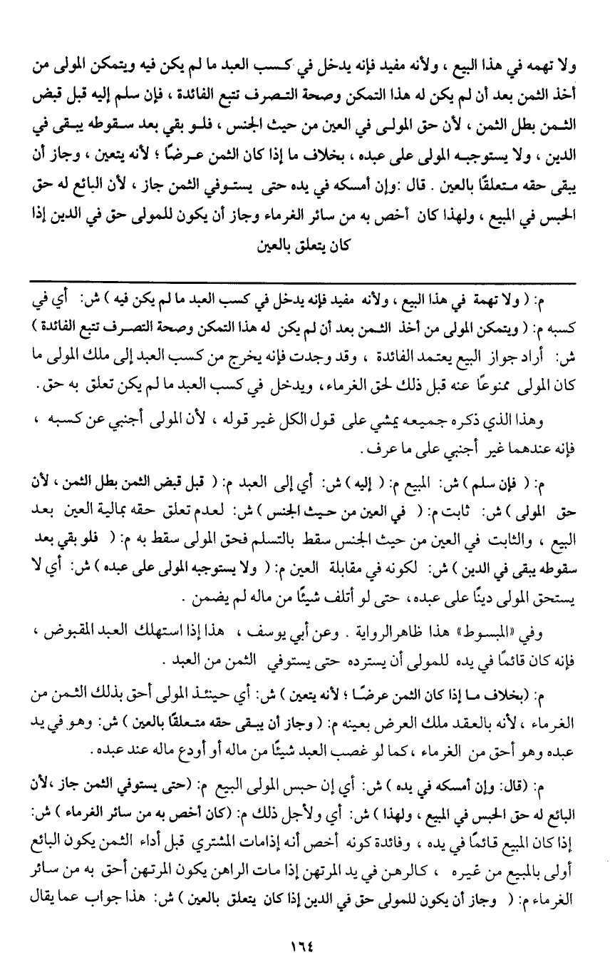 م: (قال: وإن أمسكه في يده) ش: أي إن حبس المولى البيع م: (حتى يستوفي الثمن جاز؛ لأن البائع له حق الحبس في المبيع، ولهذا) ش: أي ولأجل ذلك م: (كان أخص به من سائر الغرماء) ش: إذا كان المبيع قائما في يده، وفائدة كونه أخص أنه إذا مات المشتري قبل أداء الثمن يكون البائع أولى بالمبيع من غيره، كالرهن في يد المرتهن إذا مات الراهن يكون المرتهن أحق به من سائر الغرماء م: (وجاز أن يكون للمولى حق في الدين إذا كان يتعلق بالعين) ش: هذا جواب عما يقال