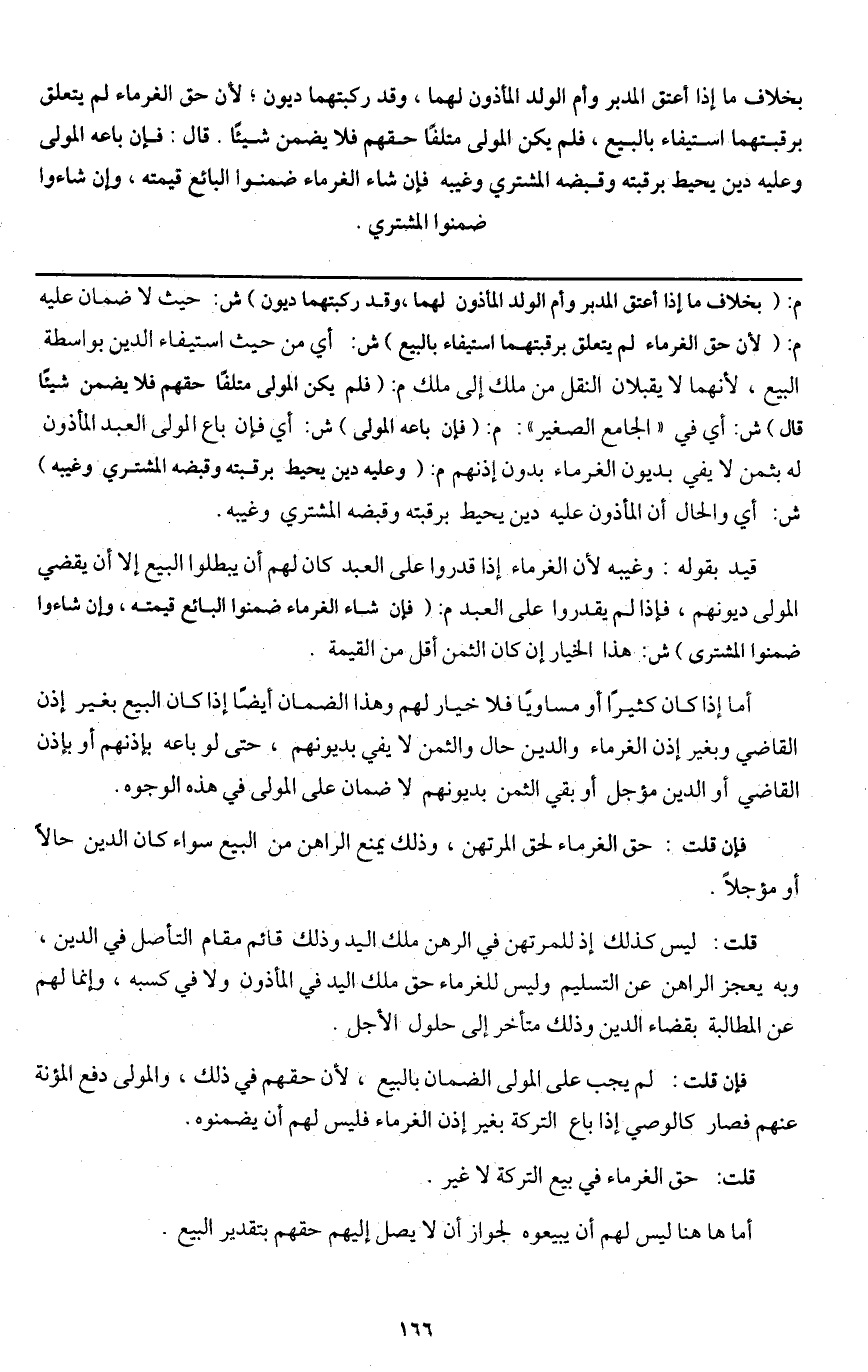 أما إذا كان كثيرا أو مساويا فلا خيار لهم وهذا الضمان أيضا إذا كان البيع بغير إذن القاضي وبغير إذن الغرماء والدين حال، والثمن لا يفي بديونهم، حتى لو باعه بإذنهم أو بإذن القاضي أو الدين مؤجل أو بقي الثمن بديونهم لا ضمان على المولى في هذه الوجوه.