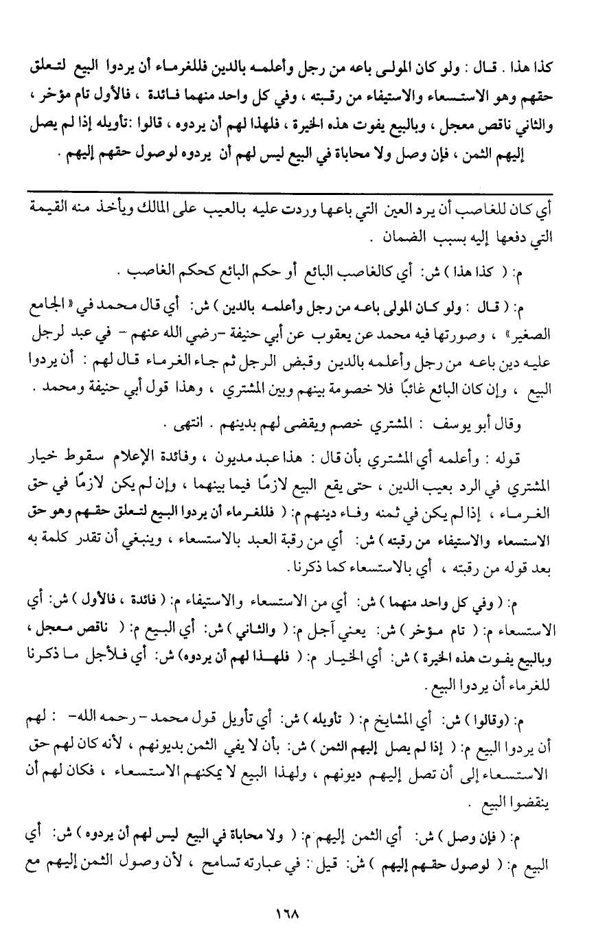 كذا هذا. قال: ولو كان المولى باعه من رجل وأعلمه بالدين فللغرماء أن يردوا البيع لتعلق حقهم وهو الاستسعاء والاستيفاء من رقبته، وفي كل واحد منهما فائدة، فالأول تام مؤخر، والثاني ناقص معجل، وبالبيع يفوت هذه الخيرة، فلهذا لهم أن يردوه، قالوا: تأويله إذا لم يصل إليهم الثمن، فإن وصل ولا محاباة في البيع ليس لهم أن يردوه لوصول حقهم إليهم.