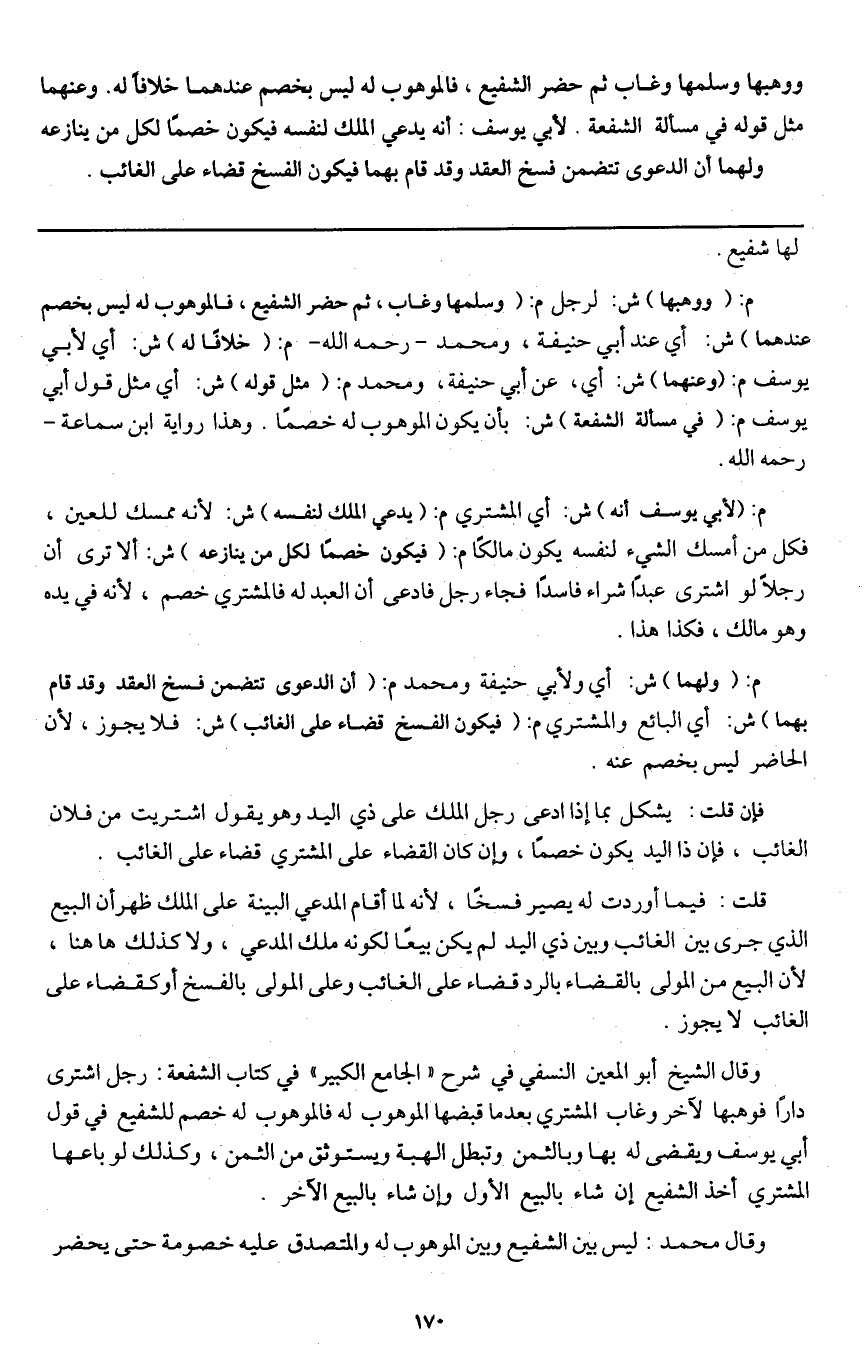 وقال محمد: ليس بين الشفيع وبين الموهوب له والمتصدق عليه خصومة حتى يحضر