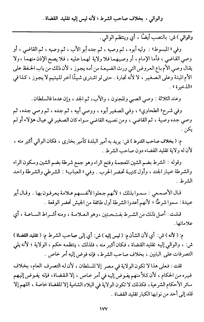 م: (بخلاف صاحب الشرط) ش: يريد به أمير البلدة كأمير بخارى، فكان الوالي أكبر منه؛ لأن له ولاية تقليد القضاء دون صاحب الشرط.