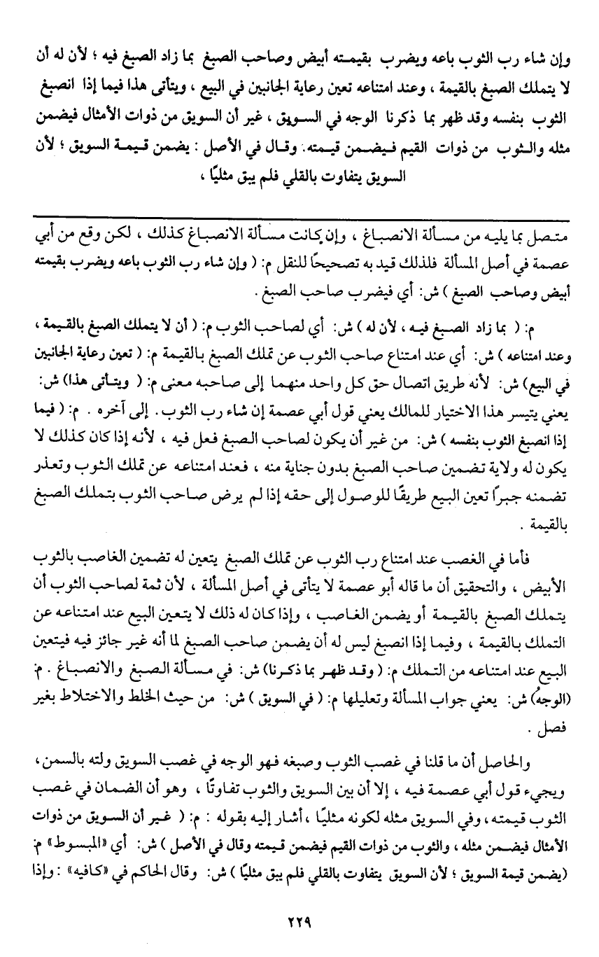 ـــــــــــــــــــــــــــــQمتصل بما يليه من مسألة الانصباغ، وإن كانت مسألة الانصباغ كذلك، لكن وقع من أبي عصمة في أصل المسألة فلذلك قيد به تصحيحا للنقل م: (وإن شاء رب الثوب باعه ويضرب بقيمته أبيض وصاحب الصبغ) ش: أي فيضرب صاحب الصبغ.