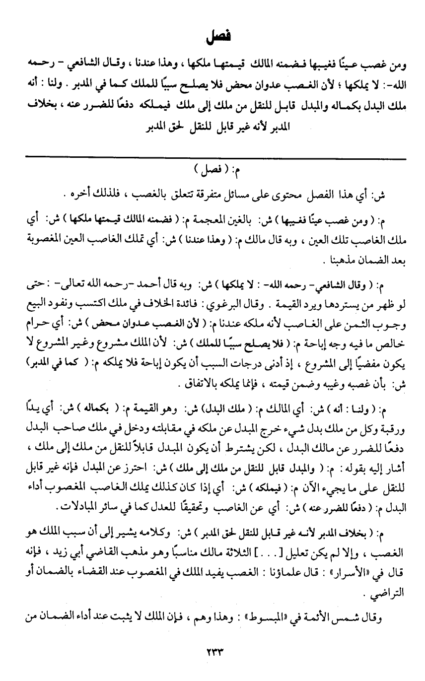 م: (فصل) ش: أي هذا الفصل محتوى على مسائل متفرقة تتعلق بالغصب، فلذلك أخره.