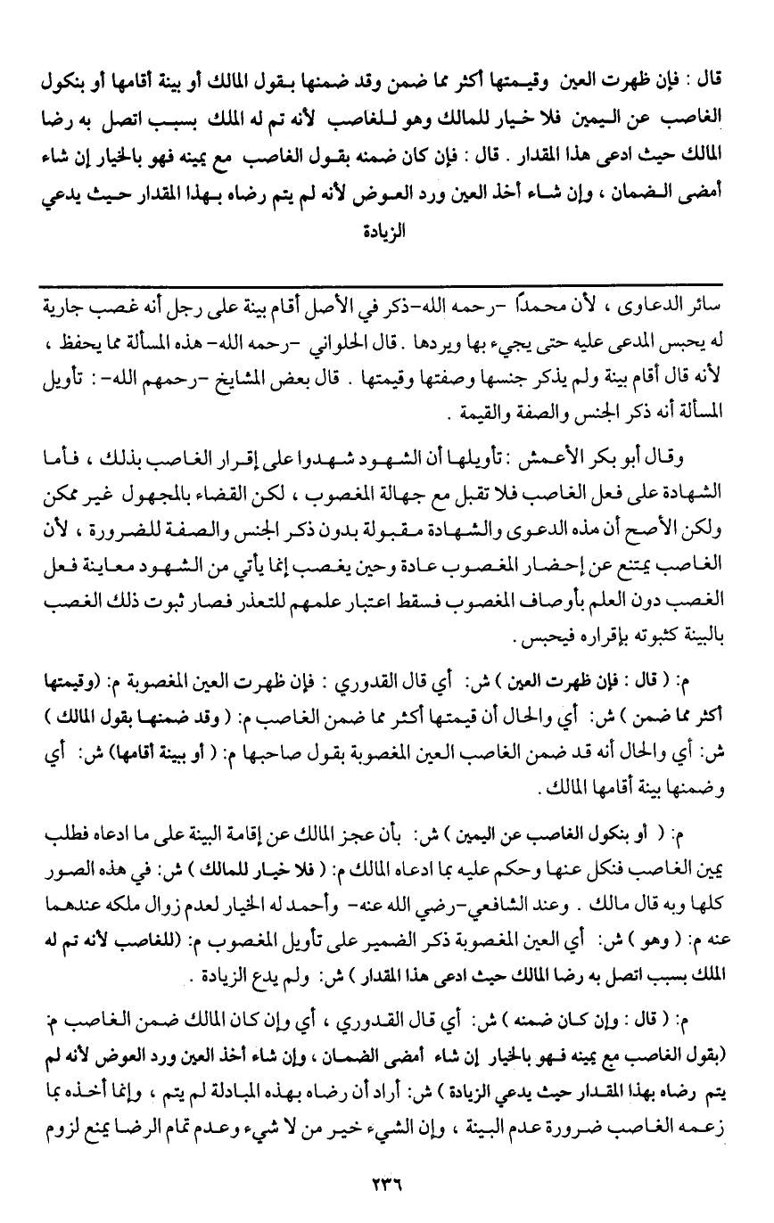 وقال أبو بكر الأعمش: تأويلها أن الشهود شهدوا على إقرار الغاصب بذلك، فأما الشهادة على فعل الغاصب فلا تقبل مع جهالة المغصوب، لكن القضاء بالمجهول غير ممكن ولكن الأصح أن هذه الدعوى والشهادة مقبولة بدون ذكر الجنس والصفة للضرورة؛ لأن الغاصب يمتنع عن إحضار المغصوب عادة وحين يغصب إنما يأتي من الشهود معاينة فعل الغصب دون العلم بأوصاف المغصوب فسقط اعتبار علمهم للتعذر فصار ثبوت ذلك الغصب بالبينة كثبوته بإقراره فيحبس.