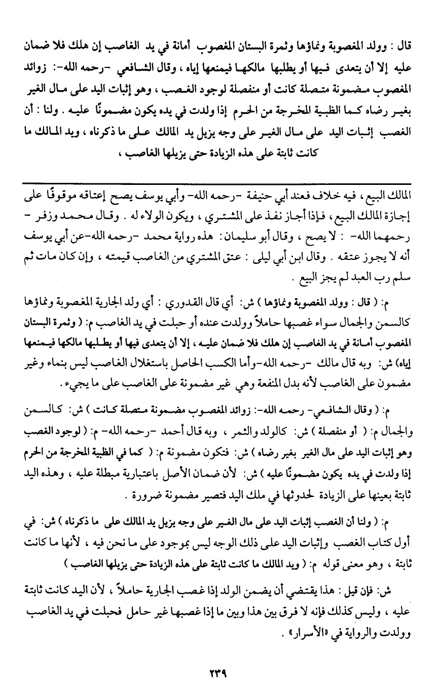 ش: فإن قيل: هذا يقتضي أن يضمن الولد إذا غصب الجارية حاملا؛ لأن اليد كانت ثابتة عليه، وليس كذلك فإنه لا فرق بين هذا وبين ما إذا غصبها غير حامل فحبلت في يد الغاصب وولدت، والرواية في " الأسرار ".