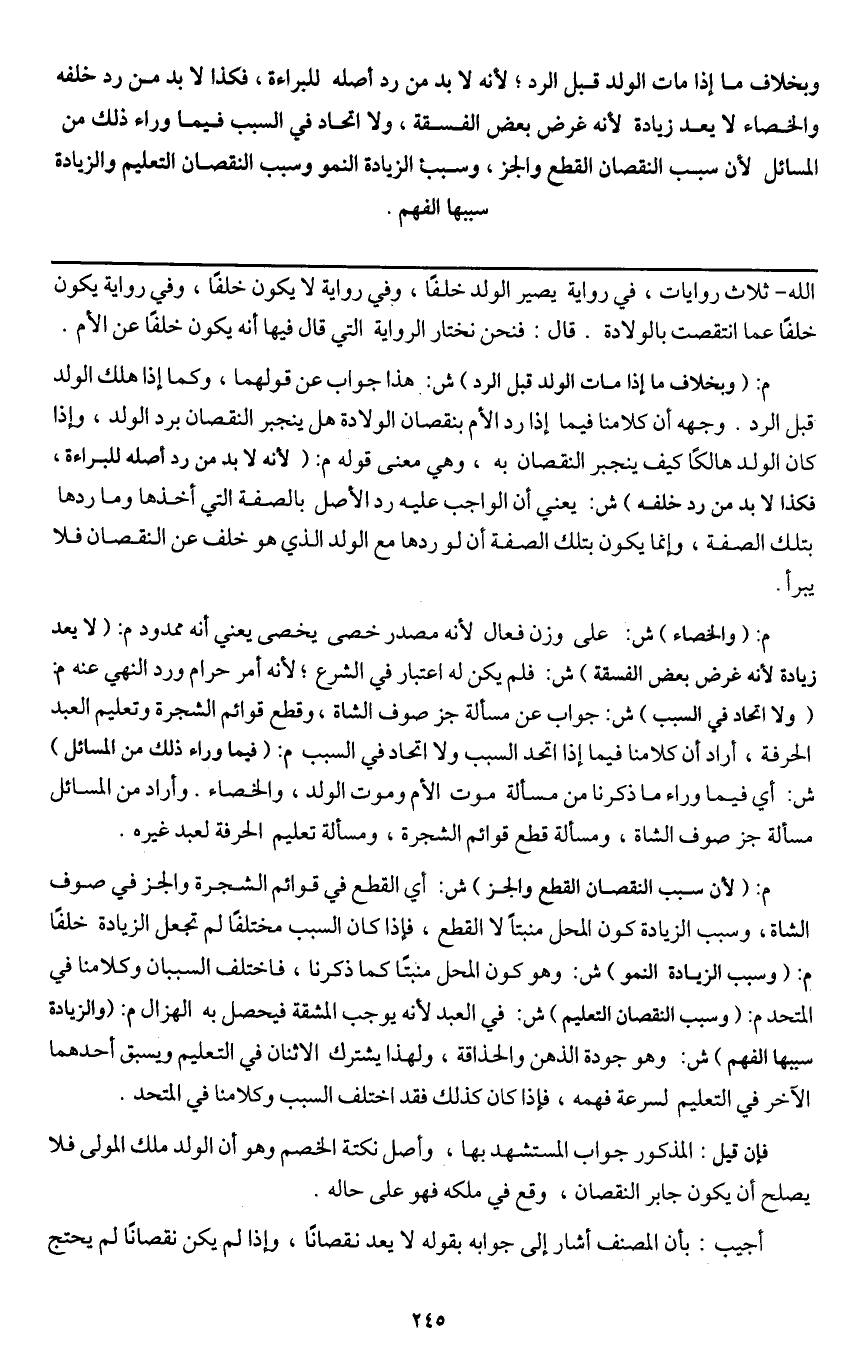 ـــــــــــــــــــــــــــــQالله ثلاث روايات، في رواية يصير الولد خلفا، وفي رواية لا يكون خلفا، وفي رواية يكون خلفا عما انتقصت بالولادة. قال: فنحن نختار الرواية التي قال فيها أنه يكون خلفا عن الأم.