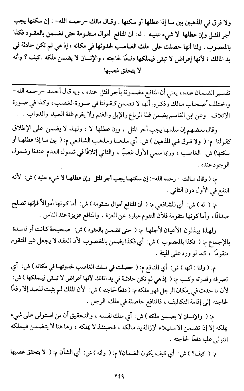 ـــــــــــــــــــــــــــــQتفسير الضمان عنده، يعني أن المنافع مضمونة بأجر المثل عنده، وبه قال أحمد - رَحِمَهُ اللَّهُ - واختلف أصحاب مالك وذكروا أنها لا تضمن كقولنا في صورة الغصب، وكذا في صورة الإتلاف. وعن ابن القاسم يضمن غلة الرباع والإبل والغنم ولا يغرم غلة العبيد والدواب.
