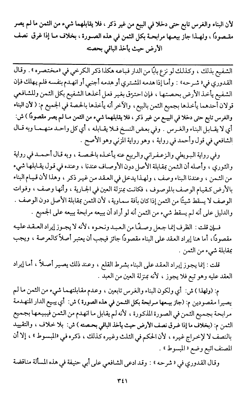 م: (ولهذا) ش: أي ولكون البناء والغرس تابعين، وعدم مقابلتهما شيء من الثمن ما لم يصيرا مقصودين م: (جاز بيعها مرابحة بكل الثمن في هذه الصورة) ش: أي يبيع الدار المنهدمة مرابحة بجميع الثمن في الصورة المذكورة؛ لأنه لم يقابل ما انهدم من الثمن فيبيعها بجميع الثمن م: (بخلاف ما إذا غرق نصف الأرض حيث يأخذ الباقي بحصته) ش: بلا خلاف، والتقييد بالنصف لا لإخراج غيره؛ لأن الحكم في الثلث وغيره كذلك، ذكره في " المبسوط "، إلا أن المصنف اتبع وضع " المبسوط ".