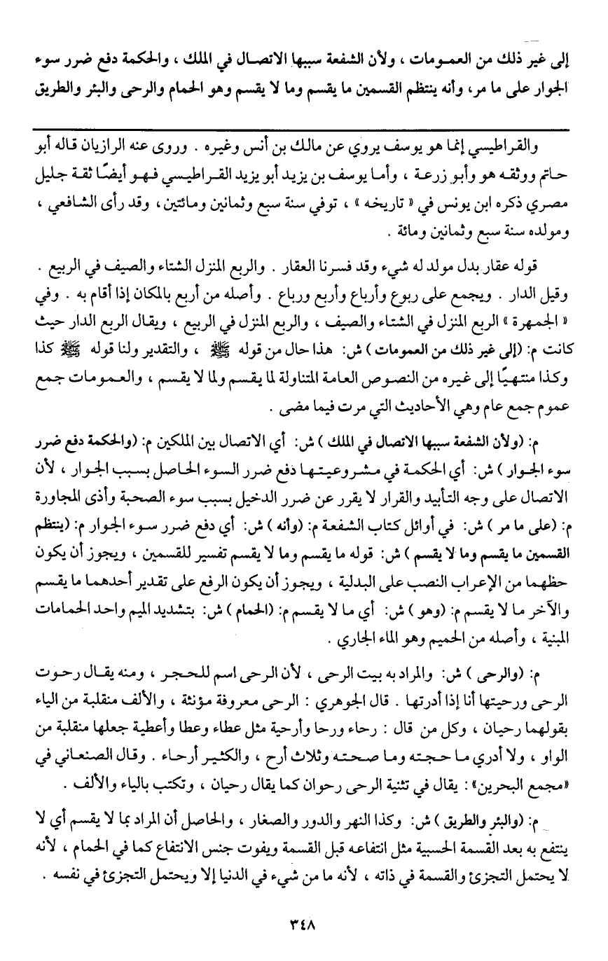 إلى غير ذلك من العمومات، ولأن الشفعة سببها الاتصال في الملك، والحكمة دفع ضرر سوء الجوار على ما مر، وأنه ينتظم القسمين ما يقسم وما لا يقسم وهو الحمام والرحى والبئر والطريق