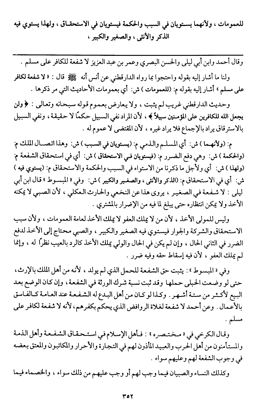 م: (ولأنهما) ش: أي المسلم والذمي م: (يستويان في السبب) ش: وهذا اتصال الملك م: (والحكمة) ش: وهي دفع الضرر م: (فيستويان في الاستحقاق) ش: أي في استحقاق الشفعة م: (ولهذا) ش: أي ولأجل ما ذكرنا من الاستواء في السبب والحكمة والاستحقاق م: (يستوي فيه) ش: أي في الاستحقاق م: (الذكر والأنثى، والصغير والكبير) ش: وفي " المبسوط " قال ابن أبي ليلى: لا شفعة في الصغير، يروى هذا عن النخعي والحارث العكلي؛ لأن الصبي لا يمكنه الأخذ ولا يمكن انتظاره حتى يبلغ لما فيه من الإضرار بالمشتري.