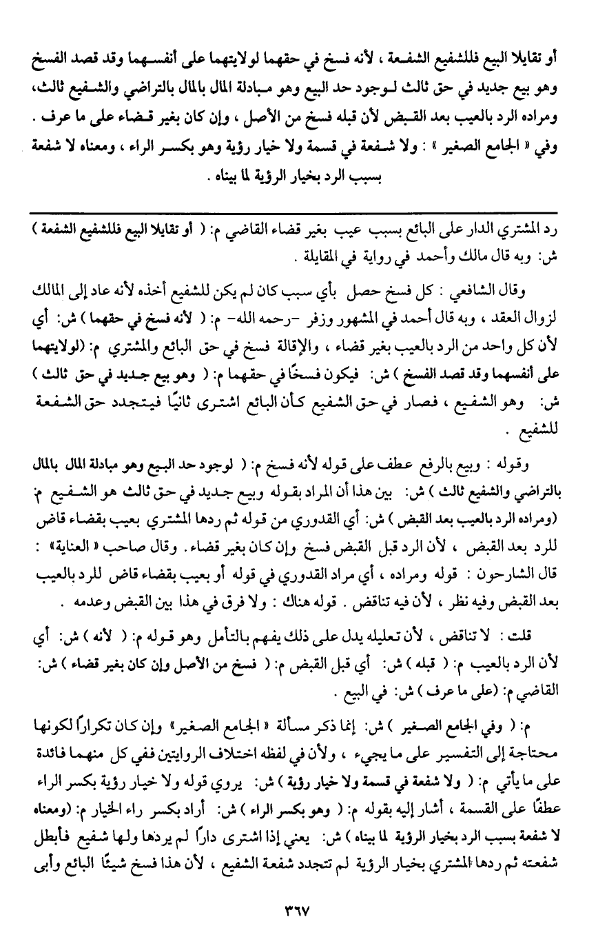 ـــــــــــــــــــــــــــــQرد المشتري الدار على البائع بسبب عيب بغير قضاء القاضي م: (أو تقايلا البيع فللشفيع الشفعة) ش: وبه قال مالك وأحمد في رواية المقايلة.