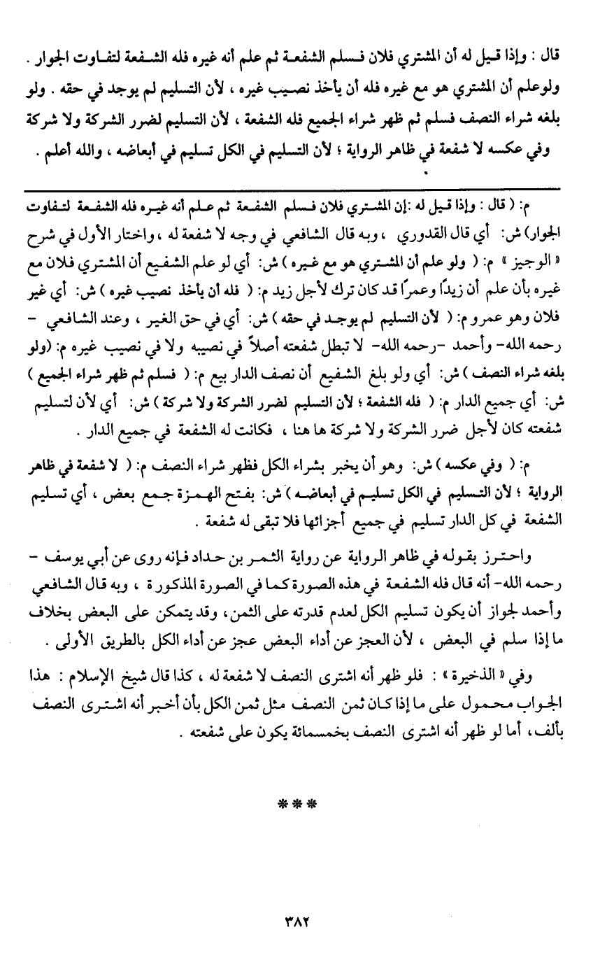 وفي " الذخيرة ": فلو ظهر أنه اشترى النصف لا شفعة له، كذا قال شيخ الإسلام: هذا الجواب محمول على ما إذا كان ثمن النصف مثل ثمن الكل بأن أخبر أنه اشترى النصف بألف، أما لو ظهر أنه اشترى النصف بخمسمائة يكون على شفعته.
