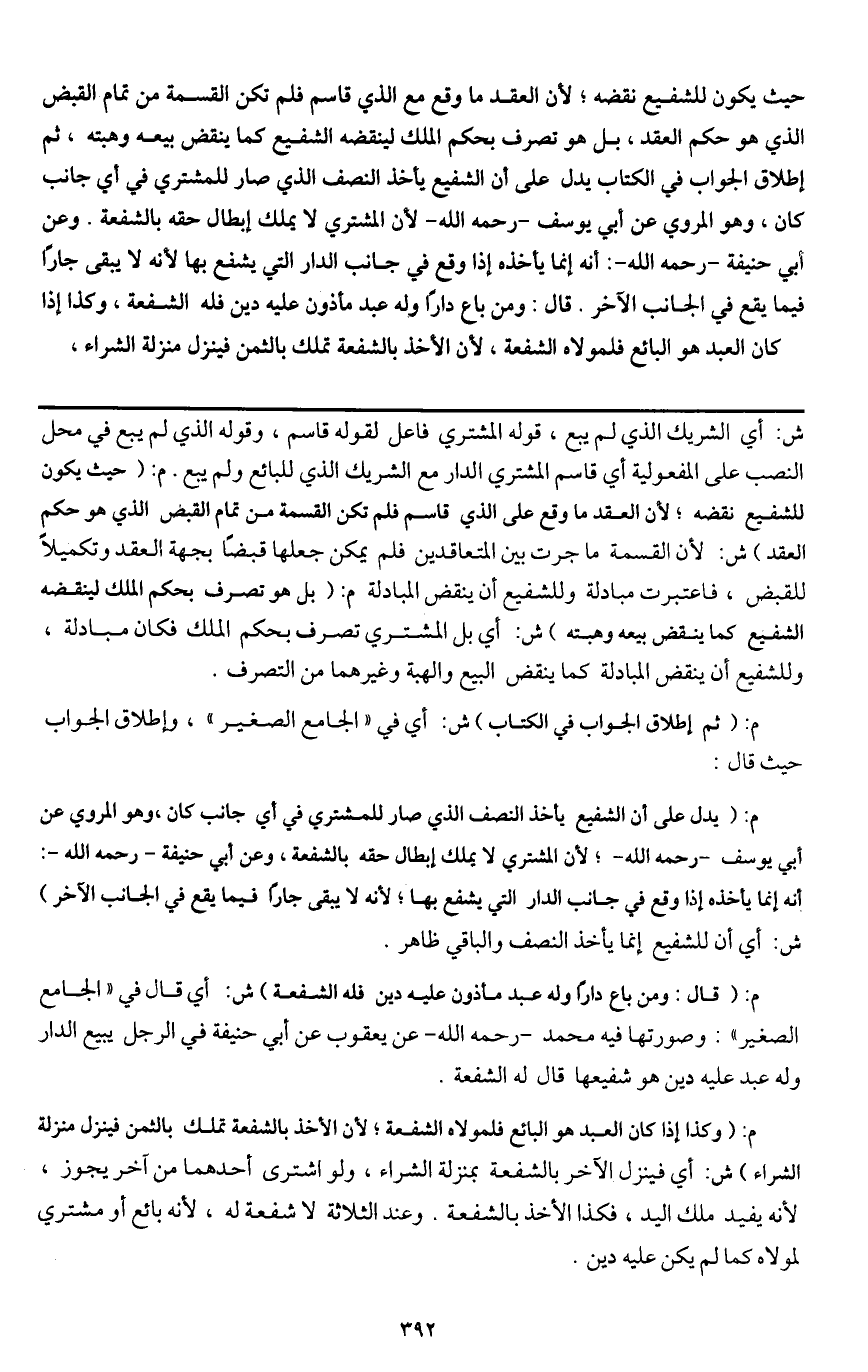 ـــــــــــــــــــــــــــــQش: أي الشريك الذي لم يبع، قوله: المشتري فاعل لقوله: قاسم، وقوله: الذي لم يبع في محل النصب على المفعولية أي قاسم المشتري الدار مع الشريك الذي للبائع ولم يبع م: (حيث يكون للشفيع نقضه، لأن العقد ما وقع على الذي قاسم فلم تكن القسمة من تمام القبض الذي هو حكم العقد) ش: لأن القسمة ما جرت بين المتعاقدين فلم يمكن جعلها قبضا بجهة العقد وتكميلا للقبض، فاعتبرت مبادلة وللشفيع أن ينقض المبادلة م: (بل هو تصرف بحكم الملك لينقضه الشفيع كما ينقض بيعه وهبته) ش: أي بل المشتري تصرف بحكم الملك فكان مبادلة، وللشفيع أن ينقض المبادلة كما ينقض البيع والهبة وغيرهما من التصرف.