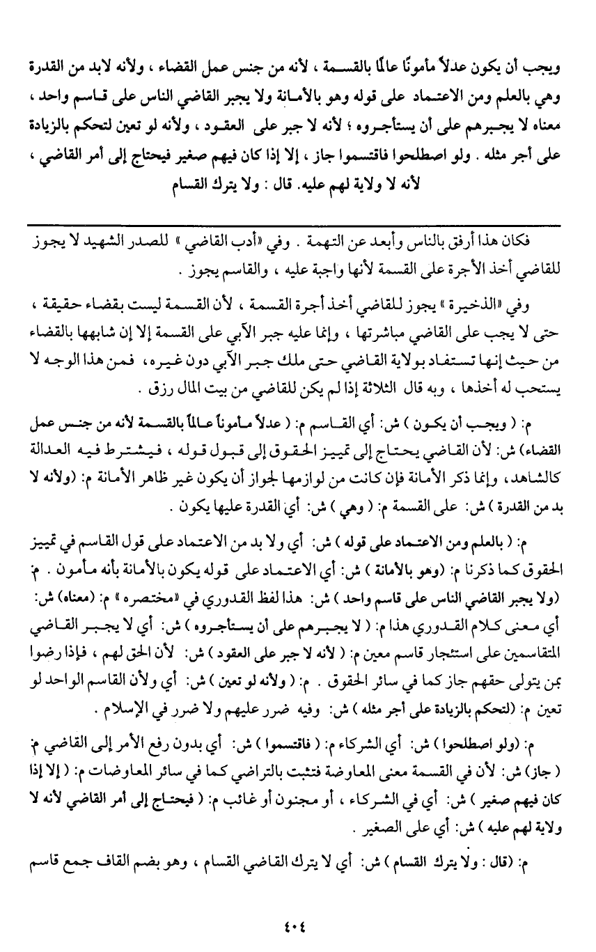 ـــــــــــــــــــــــــــــQفكان هذا أرفق بالناس وأبعد عن التهمة. وفي " أدب القاضي " للصدر الشهيد لا يجوز للقاضي أخذ الأجرة على القسمة لأنها واجبة عليه، والقاسم يجوز.