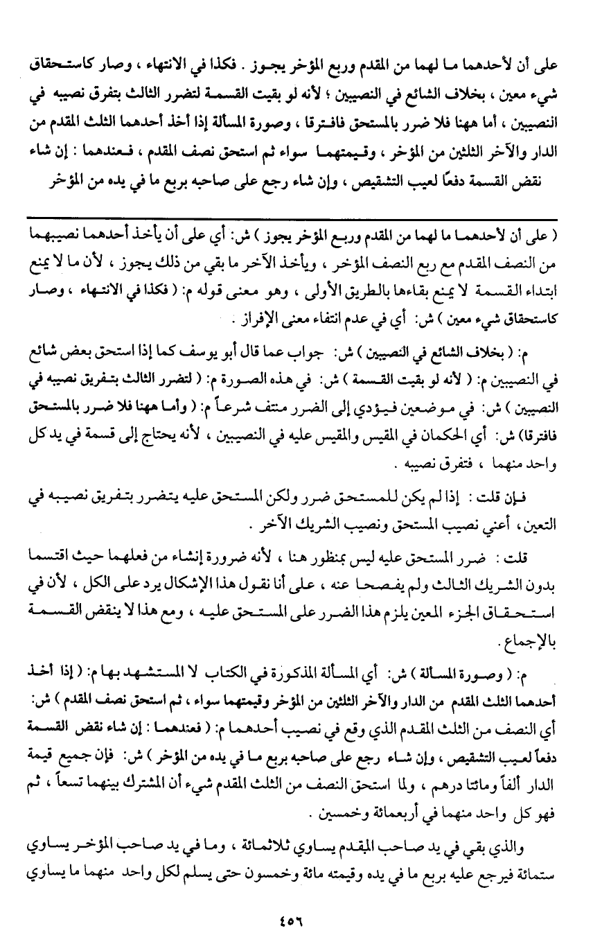 ـــــــــــــــــــــــــــــQ (على أن لأحدهما ما لهما من المقدم وربع المؤخر يجوز) ش: أي على أن يأخذ أحدهما نصيبهما من النصف المقدم مع ربع النصف المؤخر، ويأخذ ما بقي من ذلك يجوز، لأن ما لا يمنع ابتداء القسمة لا يمنع بقاءها بالطريق الأولى، وهو معنى قوله م: (فكذا في الانتهاء، وصار كاستحقاق شيء معين) ش: أي في عدم انتفاء معنى الإفراز.