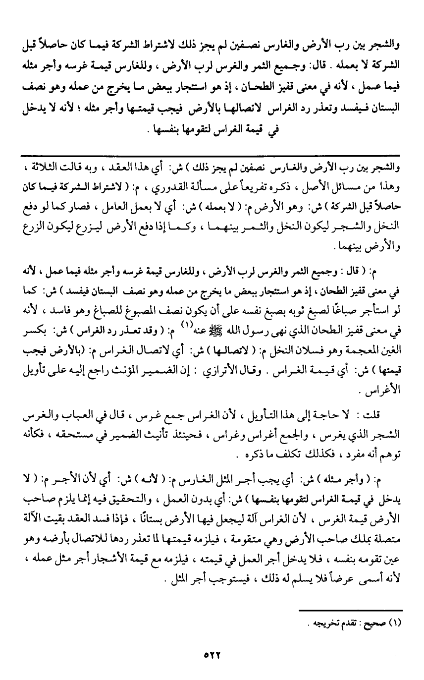 والشجر بين رب الأرض والغارس نصفين لم يجز ذلك لاشتراط الشركة فيما كان حاصلا قبل الشركة لا بعمله.