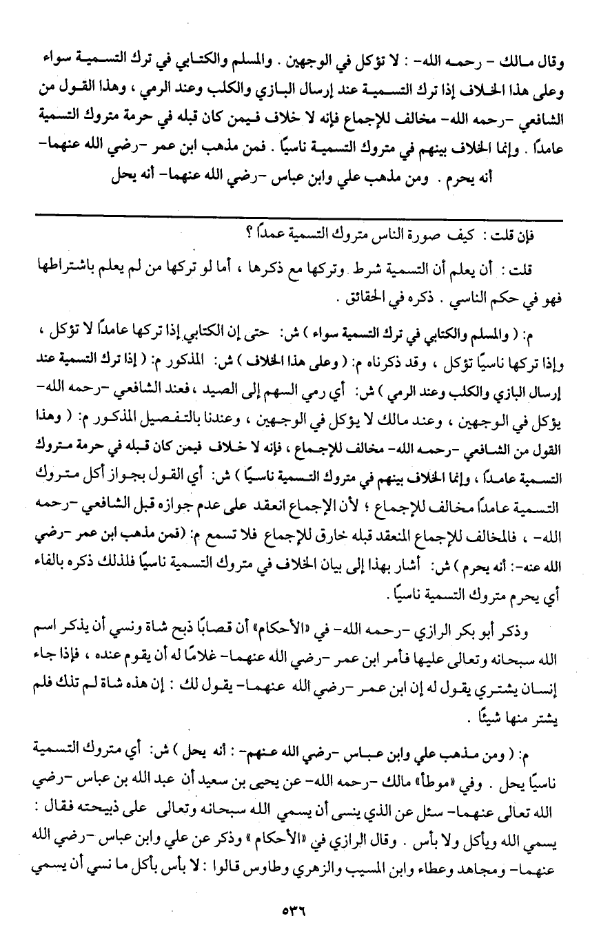 ـــــــــــــــــــــــــــــQفإن قلت: كيف صورة الناس متروك التسمية عمدا؟
