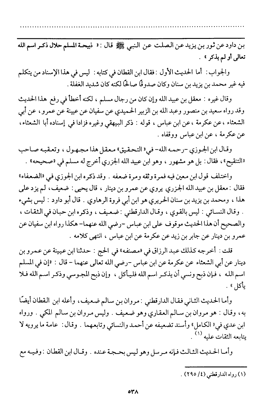 ـــــــــــــــــــــــــــــQبن داود عن ثور بن يزيد عن الصلت عن النبي - صَلَّى اللَّهُ عَلَيْهِ وَسَلَّمَ - قال: «ذبيحة المسلم حلال ذكر اسم الله تعالى أو لم يذكر» .